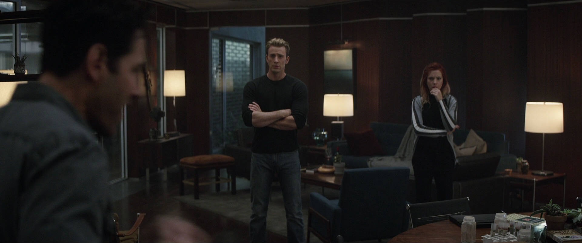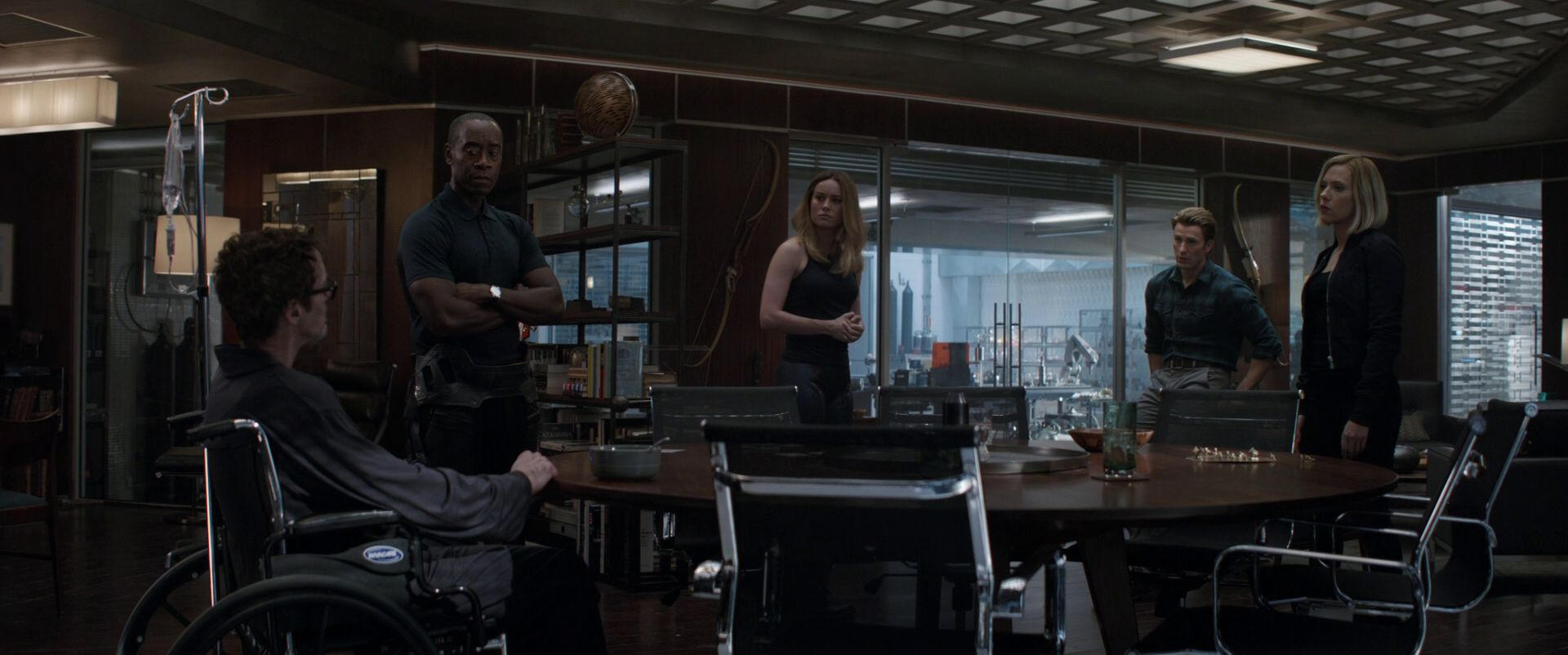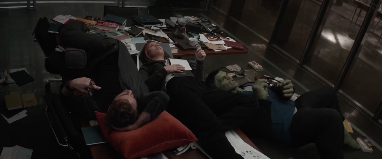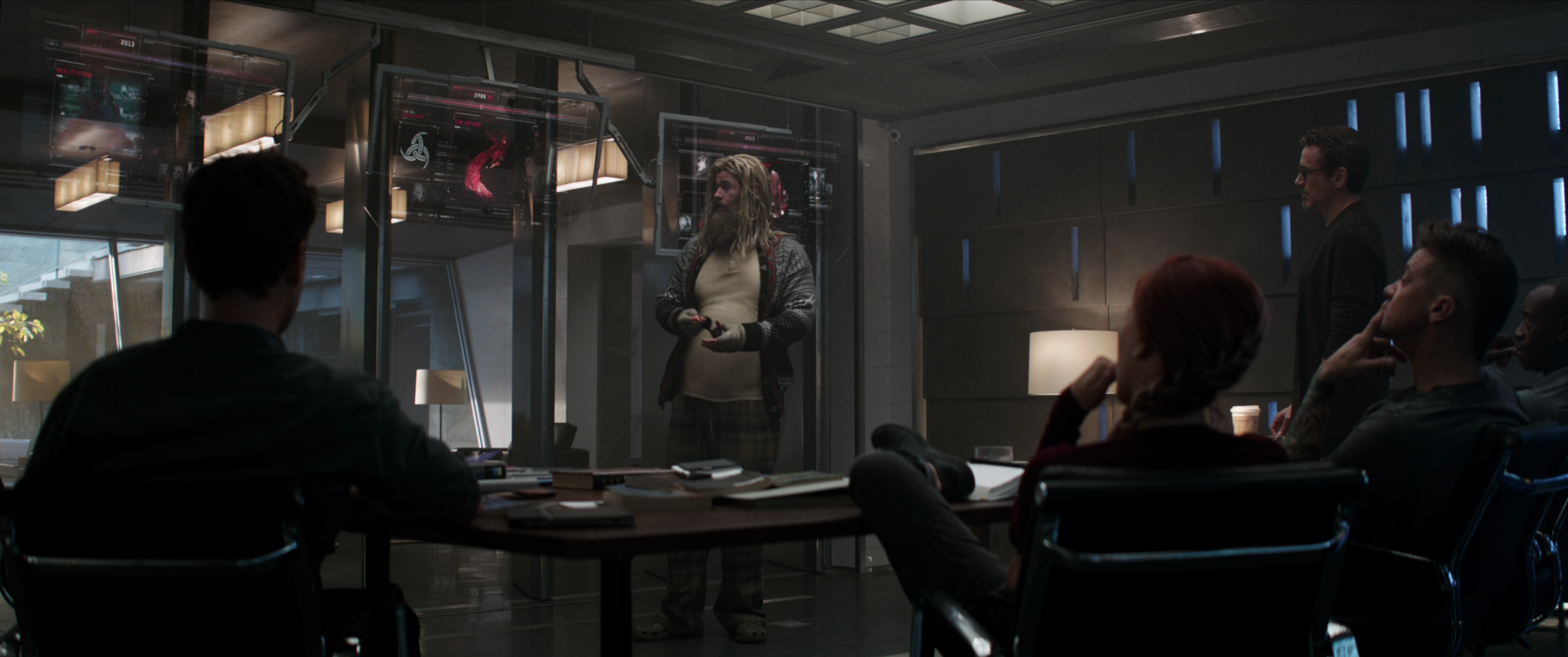 After Natasha Romanoff discovered Loki's plans to unleash Hulk, she and Thor headed to the lab to watch over him. Fury met with Stark and Banner in the lab, questioning Stark on why he was hacking S.H.I.E.L.D., and Stark asked about Phase 2. Rogers returned and revealed S.H.I.E.L.D. was intending to make weapons from the Tesseract. Romanoff and Thor then joined them, and they all began to argue over S.H.I.E.L.D.'s secrets as well as with each other.[8]