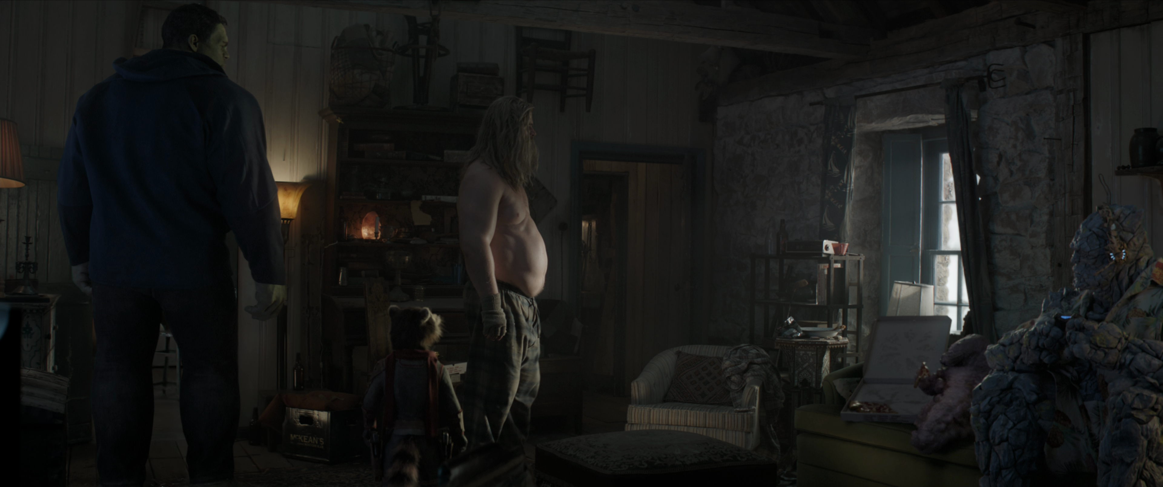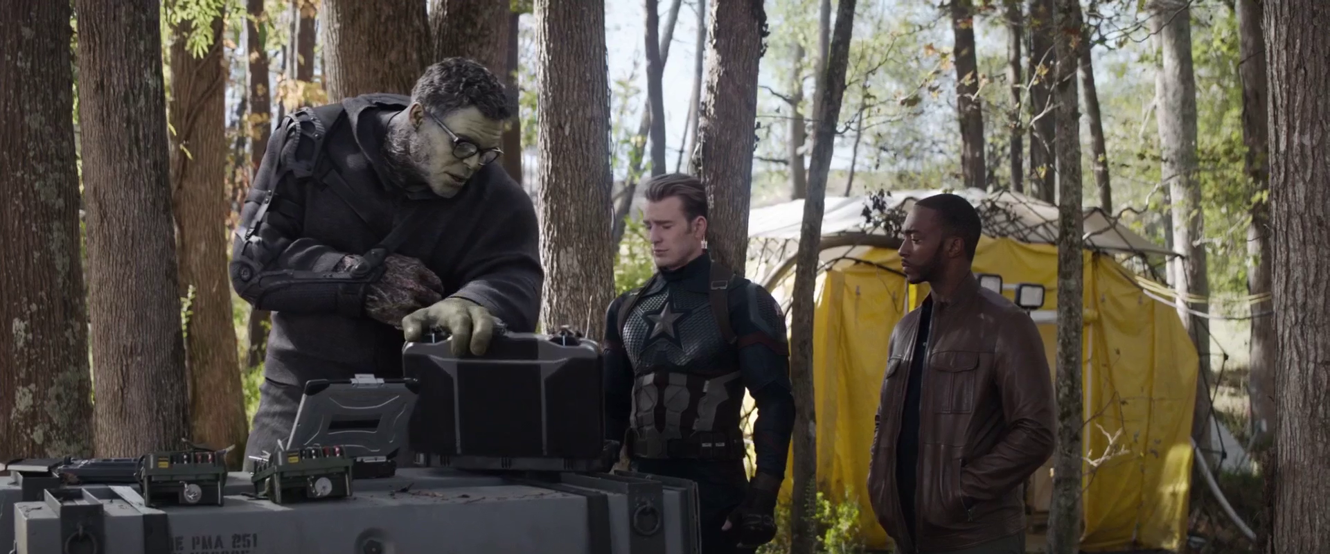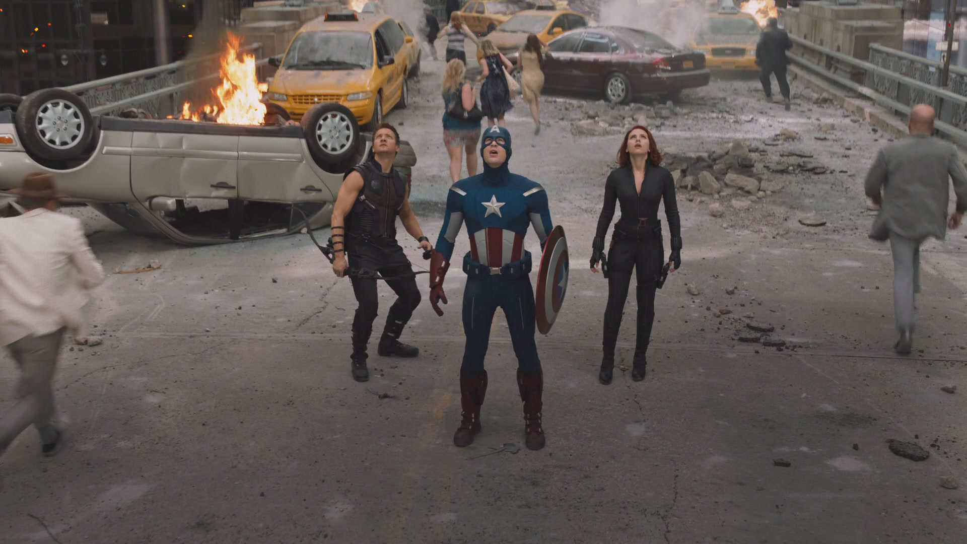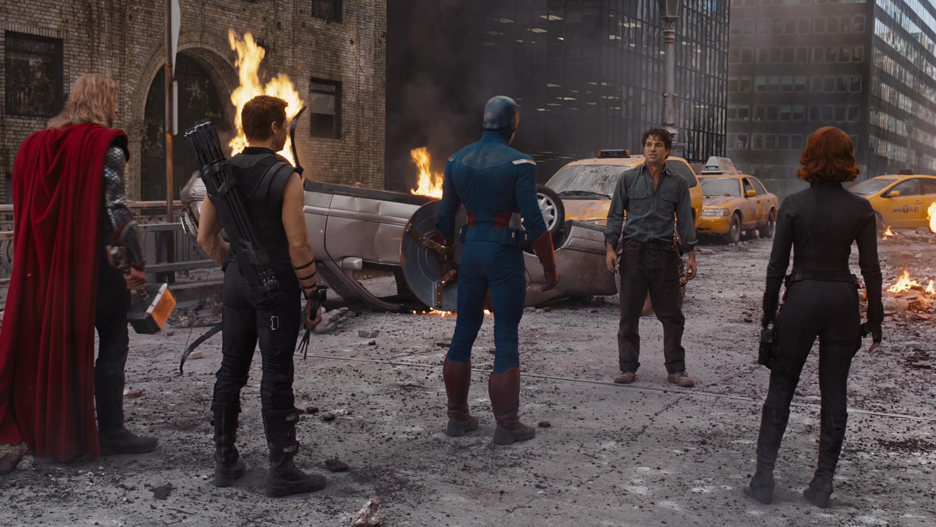 The heated argument between the Avengers was interrupted when the Helicarrier was attacked by Hawkeye, blowing up the lab, scattering the team in the chaos. Iron Man and Captain America went to repair the turbine, while Black Widow witnessed Bruce Banner lose control and transform into Hulk. Black Widow proceeded to run for her life from the rampaging Hulk until she was saved by Thor, who fought the beast. Meanwhile, Iron Man cleared through the debris as he instructed Captain America how to fix the engine.
