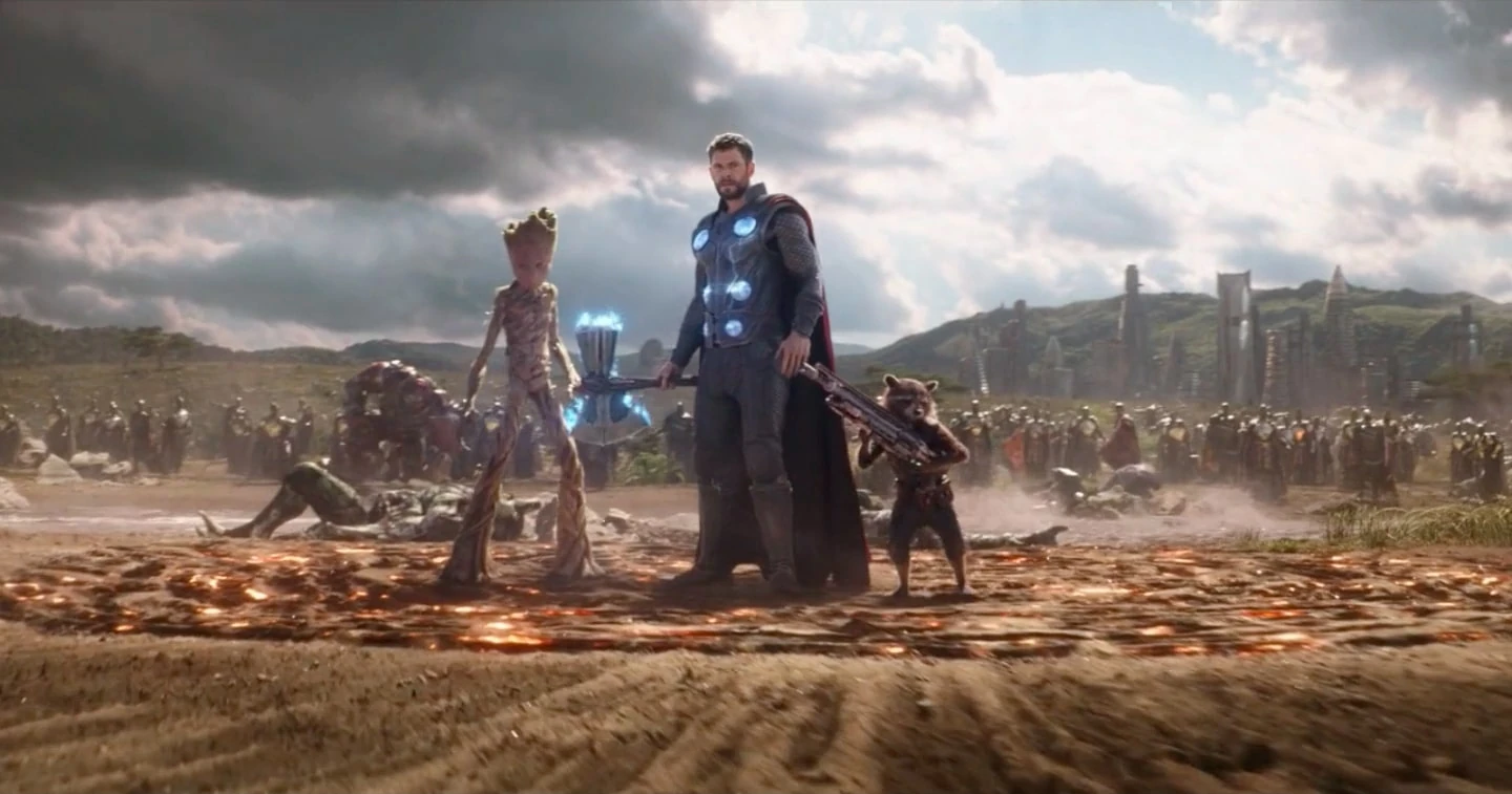 Two years after the Accords were ratified, Thanos launched a crusade against the universe in his quest to gather the Infinity Stones. The Avengers were split up into different groups as they fought to combat Thanos before he succeeded, joining forces with the Masters of the Mystic Arts, the Wakandans, and the Guardians of the Galaxy. Iron Man and Spider-Man went to Titan alongside Doctor Strange, where they allied with Star-Lord, Nebula, Mantis and Drax to try to stop Thanos, while Captain America, Banner, Black Widow, War Machine, Falcon, Thor, Groot, Rocket Raccoon and Scarlet Witch protected Vision from the Black Order in Wakanda. The team on Wakanda was successful in killing Thanos' minions, but the team on Titan was defeated. Thanos arrived and overpowered the heroes on Wakanda with ease before killing Vision to acquire the Mind Stone, thus completing the Infinity Gauntlet, and eradicating half of the universe's population. Among the victims were Falcon, Scarlet Witch, and Spider-Man; with only Iron Man, Captain America, Thor, Banner, Black Widow, and War Machine surviving the war. Despite them managing to kill Thanos, the victory was empty, as the Infinity Stones were destroyed, ensuring no chances of reversing the Snap. This failure greatly impacted each of the Avengers, leaving Black Widow, War Machine, Rocket, Nebula, Captain Marvel, and Okoye as the remaining members, trying to maintain order on Earth and the wider universe.