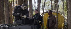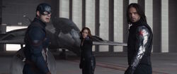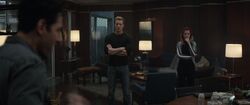 When Rogers arrived on the Helicarrier, he was greeted by Romanoff, and the two got acquainted. They were soon joined by Banner, who discussed the mission with Rogers, as well as getting to know each other. When S.H.I.E.L.D. prepared for takeoff, Romanoff guided the two inside, after they were amazed by the Helicarrier actually being an aircraft. The three then met up with Fury in the bridge and started to assist S.H.I.E.L.D. in there search for Loki and the Tesseract.[8]