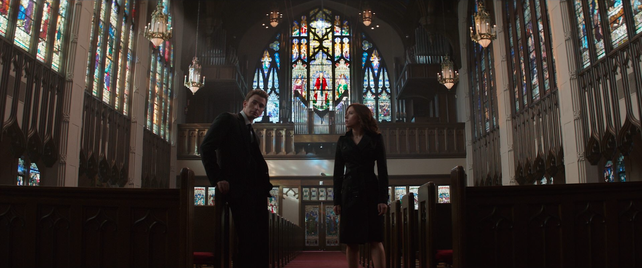 Black Widow and Hawkeye fight each other
