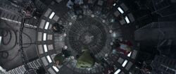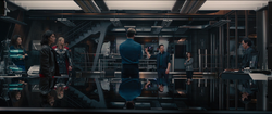 With the team joined by Thor, they all gathered in the bridge and watched Nick Fury talk with Loki in his cell. The team discussed Loki's plans, and Thor revealed that his brother had an army that was going to attack Earth. When they realized Loki planned to open a portal, Tony Stark joined them informing them that was what the Iridium was for. Stark and Bruce Banner discussed the mechanics of the portal in detail and then went to work on locating the Tesseract.