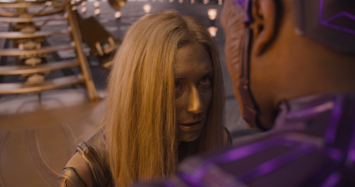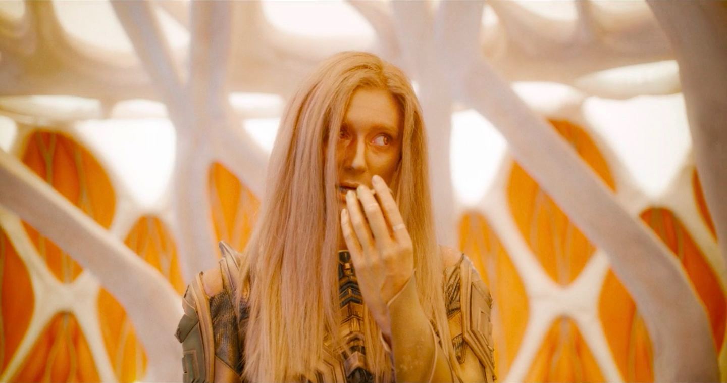Still desiring to get her revenge against the Guardians, Ayesha went to Contraxia to hire Yondu Udonta and his Ravagers to capture the Guardians. Arriving on Contraxia, Ayesha had her personal aides roll out a blue carpet in front of her so that she would not have to walk on the planet's snowy ground. Ayesha greeted Udonta and offered him one million Units to successfully capture and bring the Guardians to her so she can kill them. Udonta went against his deal with Ayesha, but Taserface supplied her with the location of Udonta and the Guardians.[3]