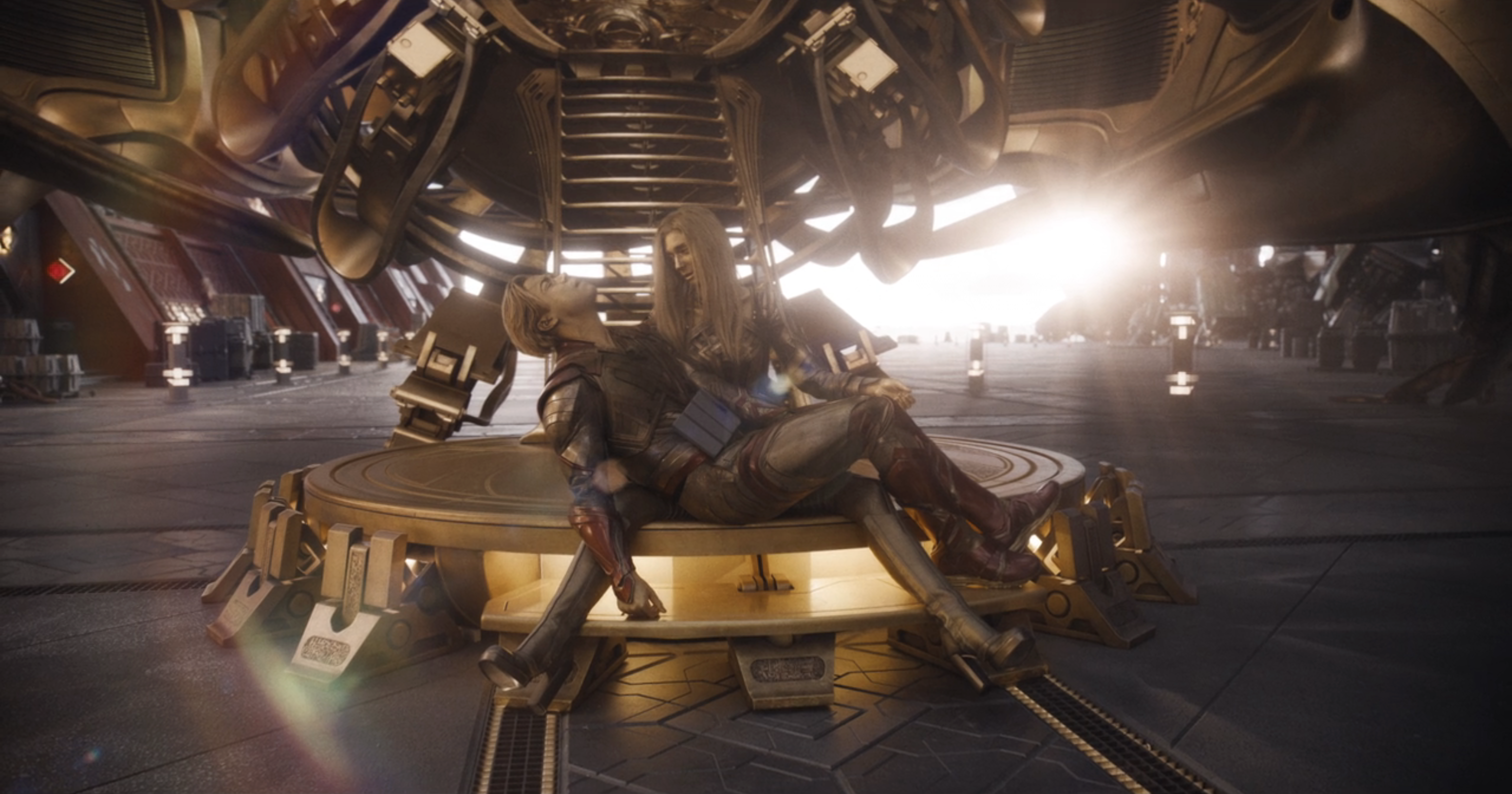 Once the Guardians had completed the job, they headed to the Sovereign Throne Room, where Ayesha thanked them, claiming that they could not risk the lives of her own people. Ayesha educated the Guardians on how the Sovereign were created, which Peter Quill remarked about preferring the natural way of procreation. Ayesha was intrigued by Quill and even suggested the two of them partaking in procreating. Gamora returned to their arrangement, so Ayesha had Nebula brought out and told Gamora to do with her as she pleased. Before they left, Ayesha asked Quill about his heritage, sensing that he was a hybrid of unorthodox genealogy.[3]
