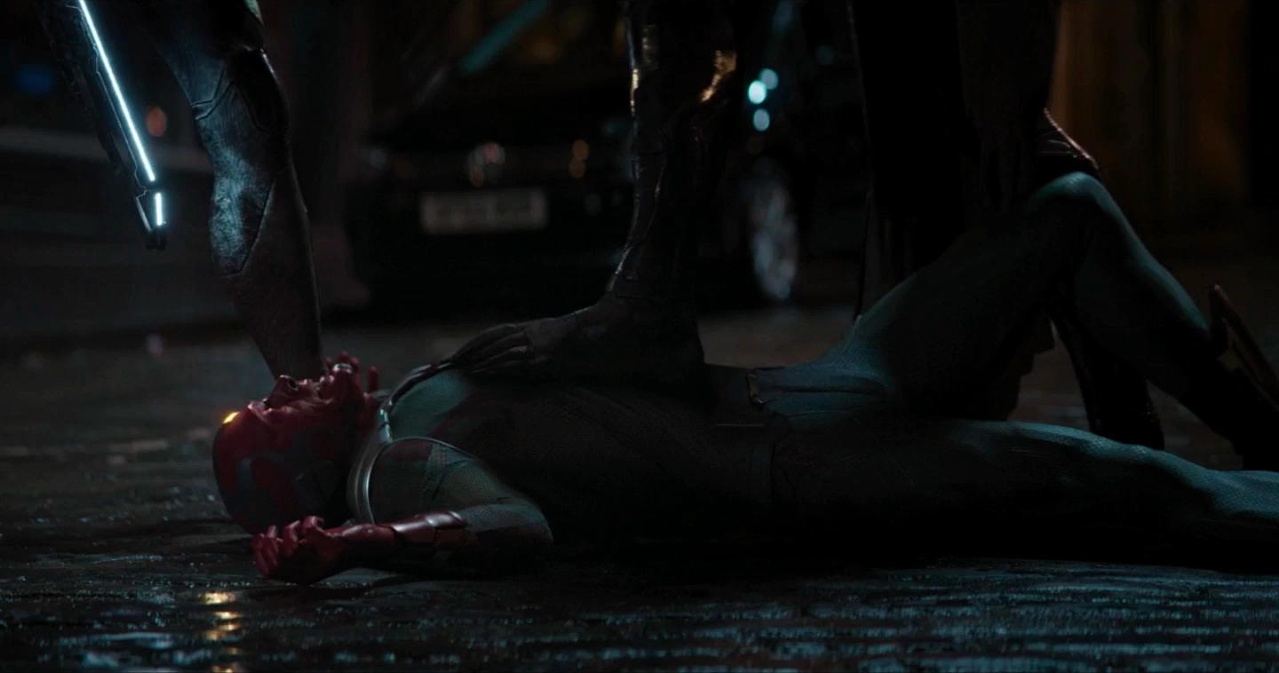 Corvus Glaive stabs Vision in his chest