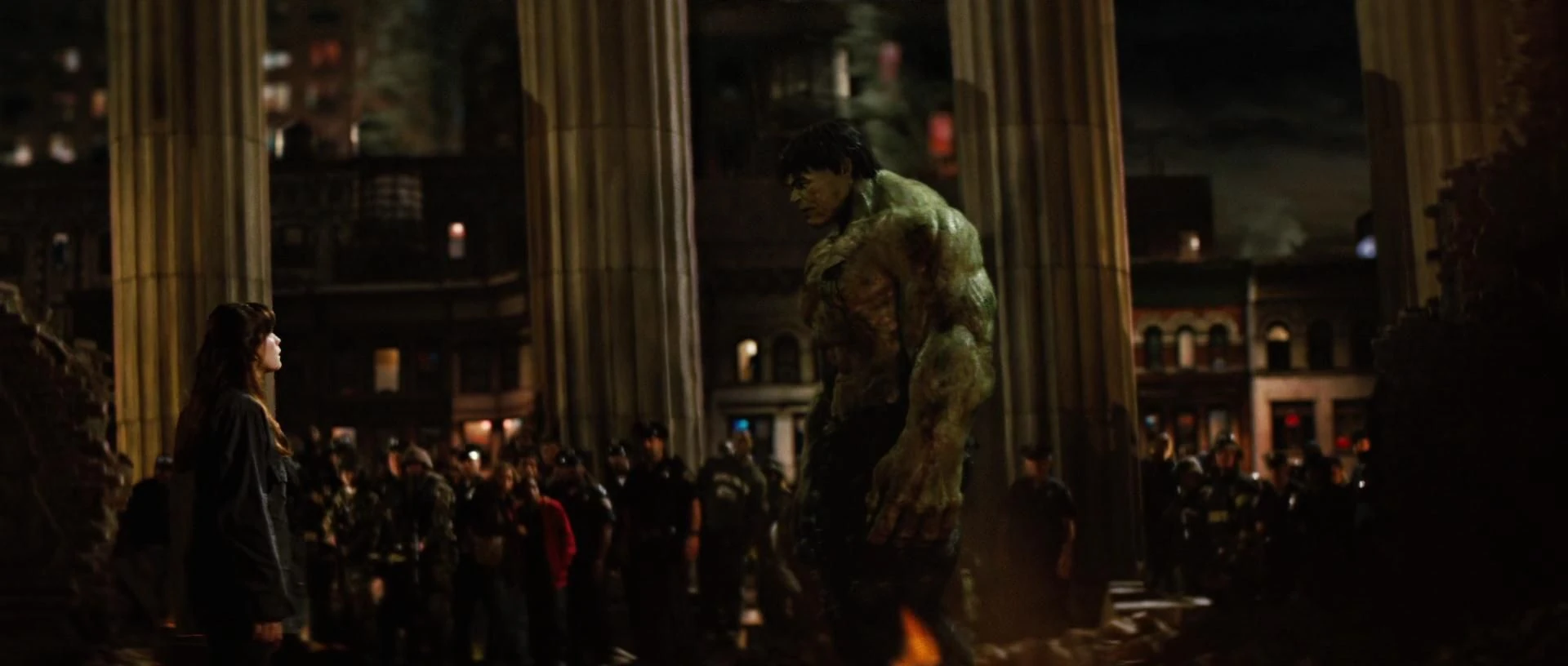The next day before Bruce Banner left, Leonard Samson informed Thaddeus Ross that Banner and Ross had reunited and that they were headed to Culver University. A battle ensued on the university campus which lead to Banner transforming into Hulk. During the battle, Hulk connected with Ross on multiple levels, as he realized that she was the only one without the intention to hurt him. This resulted in his anger increasing when he saw Ross being hassled by the Strategic Operations Command Center.