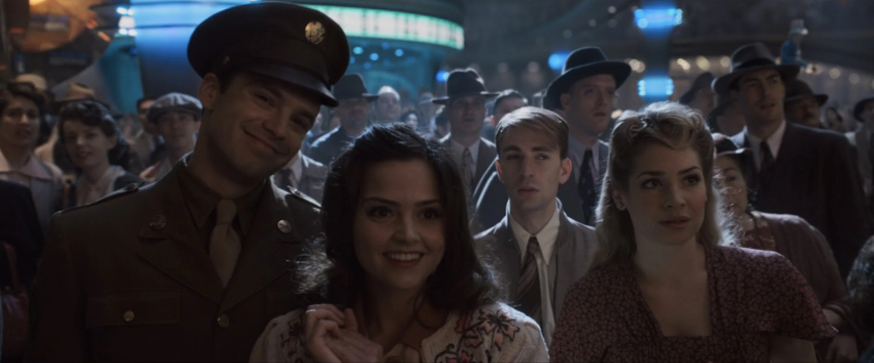 Looking at his friend, Rogers then realized Barnes was wearing his uniform while he confirmed he would ship out with the 107th Infantry Regiment to go to England the next day. While Rogers expressed his disappointment that he would not join him, Barnes then smiled and insisted that they had to celebrate his last night before heading out into combat by going to the Stark Expo, which Rogers agreed to go to despite his poor mood, still wanting to support Barnes.[1]
