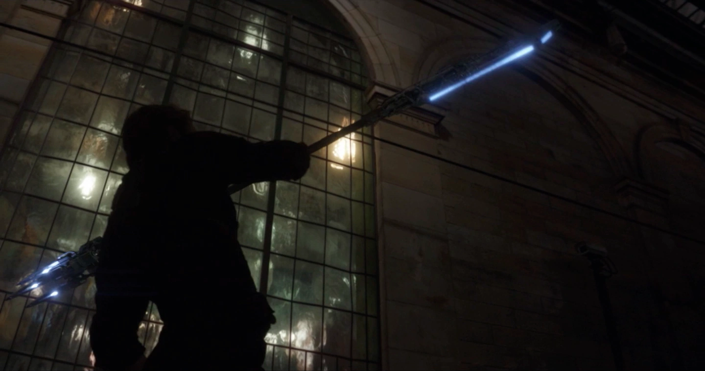 Corvus Glaive's Glaive: Rogers temporarily used Corvus Glaive's weapon in combat with Proxima Midnight. Together with Black Widow, Rogers managed to disarm and defeat Midnight before they escaped. The glaive then was aspired back and also returned to the owner.