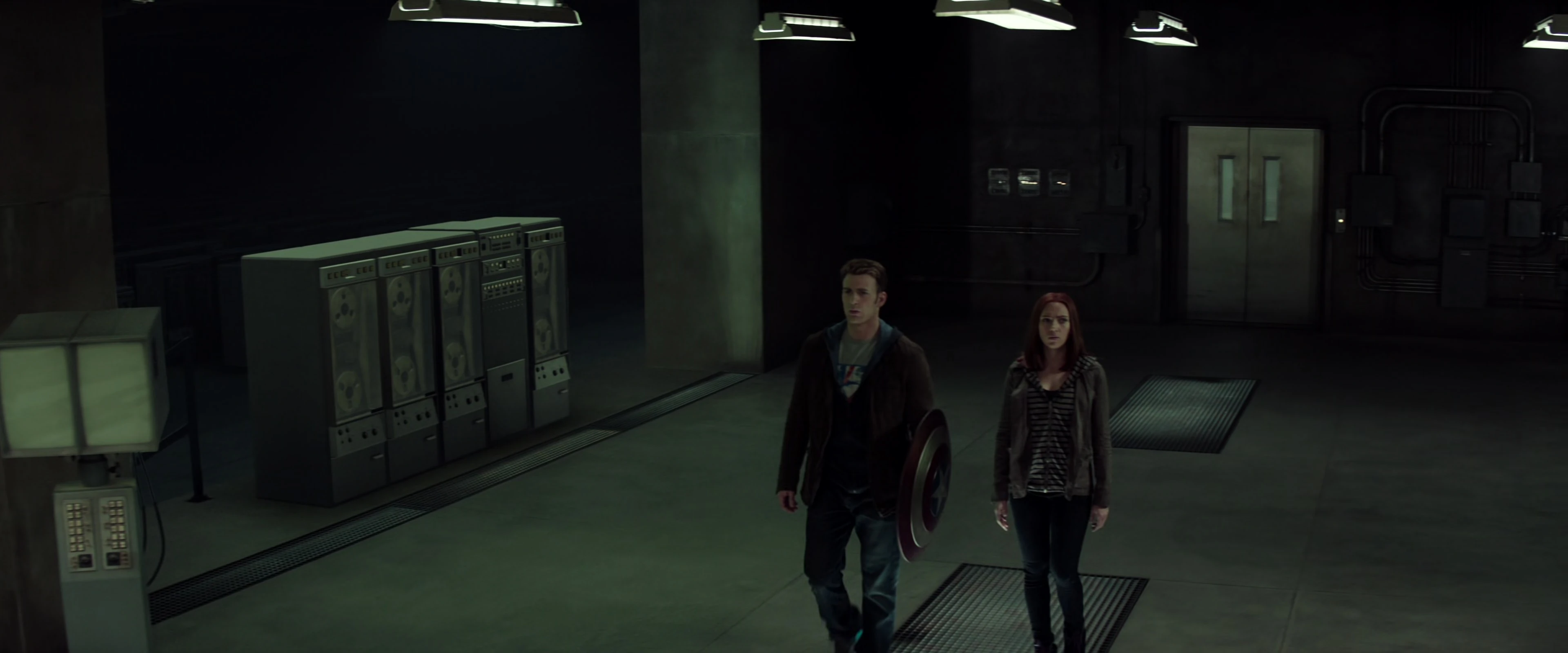 As soon as they stepped inside the main room, Rogers witnessed all of the scientists turning and looking at him, awaiting the beginning of the experiment, before Abraham Erskine greeted Rogers and Carter while Howard Stark prepped the machinery. While Rogers was instructed to remove his clothes and prepare for the experiment, Chester Phillips was watching from a safe distance with many other various Generals and Senators.