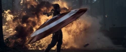 Shield Mastery: Rogers' years of training and experience with his unique shield, as well as its physical properties, allow him to accomplish amazing feats with the item. Aside from bashing foes and blocking incoming attacks, even from extremely skilled weapon masters such as Thor with his hammer and even Thanos using his sword, he is able to throw it with a nearly perfect aim, managing to slice Spider-Man's webbing with it mid-air. Rogers can hit multiple targets with the same throw by means of ricochet, and could even achieve a boomerang-like return effect, allowing him to strike enemies from behind or retrieve the shield without objects to ricochet from. Additionally, Rogers can perform combination techniques with his allies, such as allowing Thor to strike his shield to create a directed shockwave at HYDRA soldiers, jumping and catching his shield thrown by Hawkeye and throwing it at an Ultron Sentry before landing on the ground, and allowing Thor to strike his shield's edge with his hammer to send it through multiple Sentries. Rogers' skill applies to other shields, as he was able to wield the Wakandan shields given to him for the Battle of Wakanda very expertly as blunt weapons, killing many Outriders and managing to combat and even disarm Corvus Glaive as well as even land a few hits on Thanos. Rogers can use his signature shield in conjunction with other weapons like Thor's hammer and Stormbreaker with equal, if not even greater effect.
