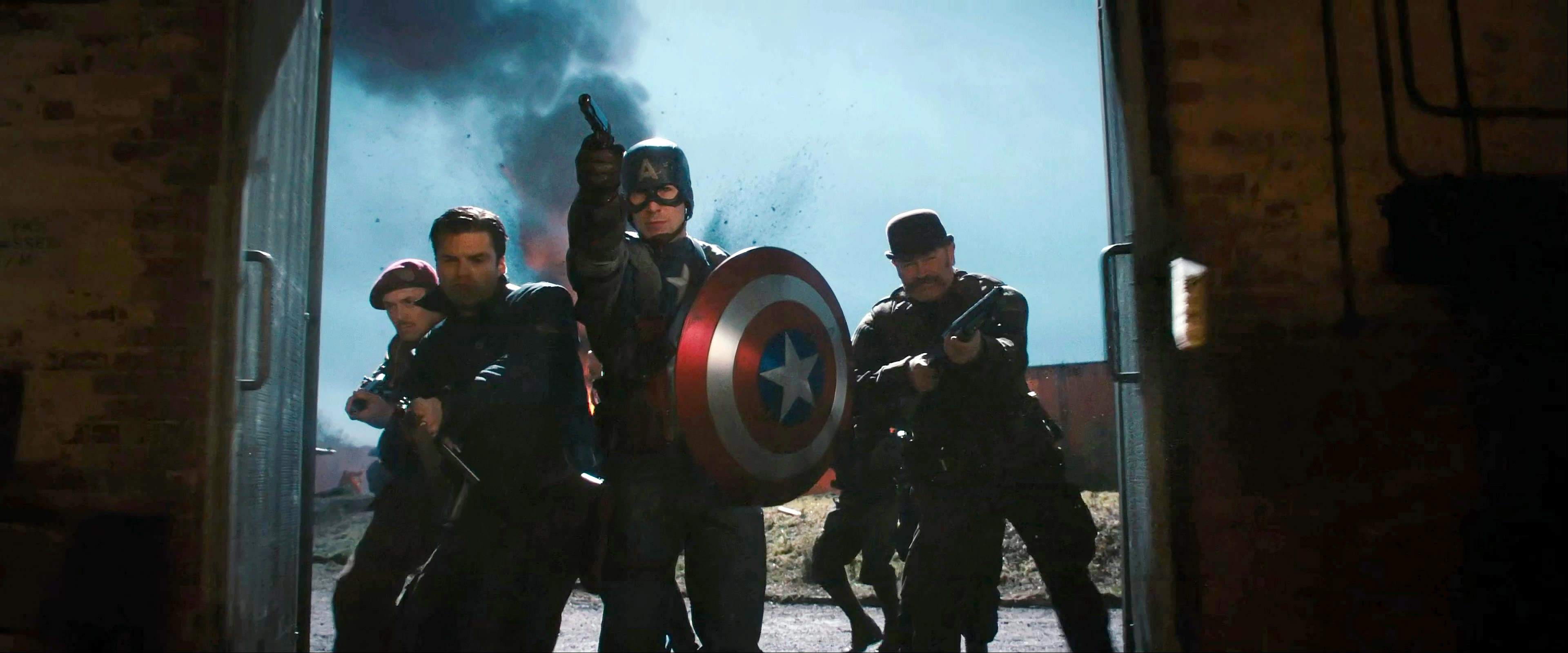 Captain America leads an assault on a HYDRA base