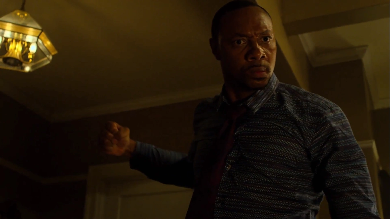 As the group settled, Hamilton was told to speak his truth with the support of Donovan. Hamilton expressed that he had been fighting all his life while growing up in Harlem before comparing that Cage's attack against him to being mauled by a bear, claiming that he had been helpless against Cage. When Cage tried to argue that Hamilton was beating his girlfriend, Hamilton yelled at him by saying that it was hearsay before Nelson broke them up. As Hamilton noted how he and Powell often argued, he insisted that Cage had no right to burst inside his home and assault him for his claims of domestic abuse.