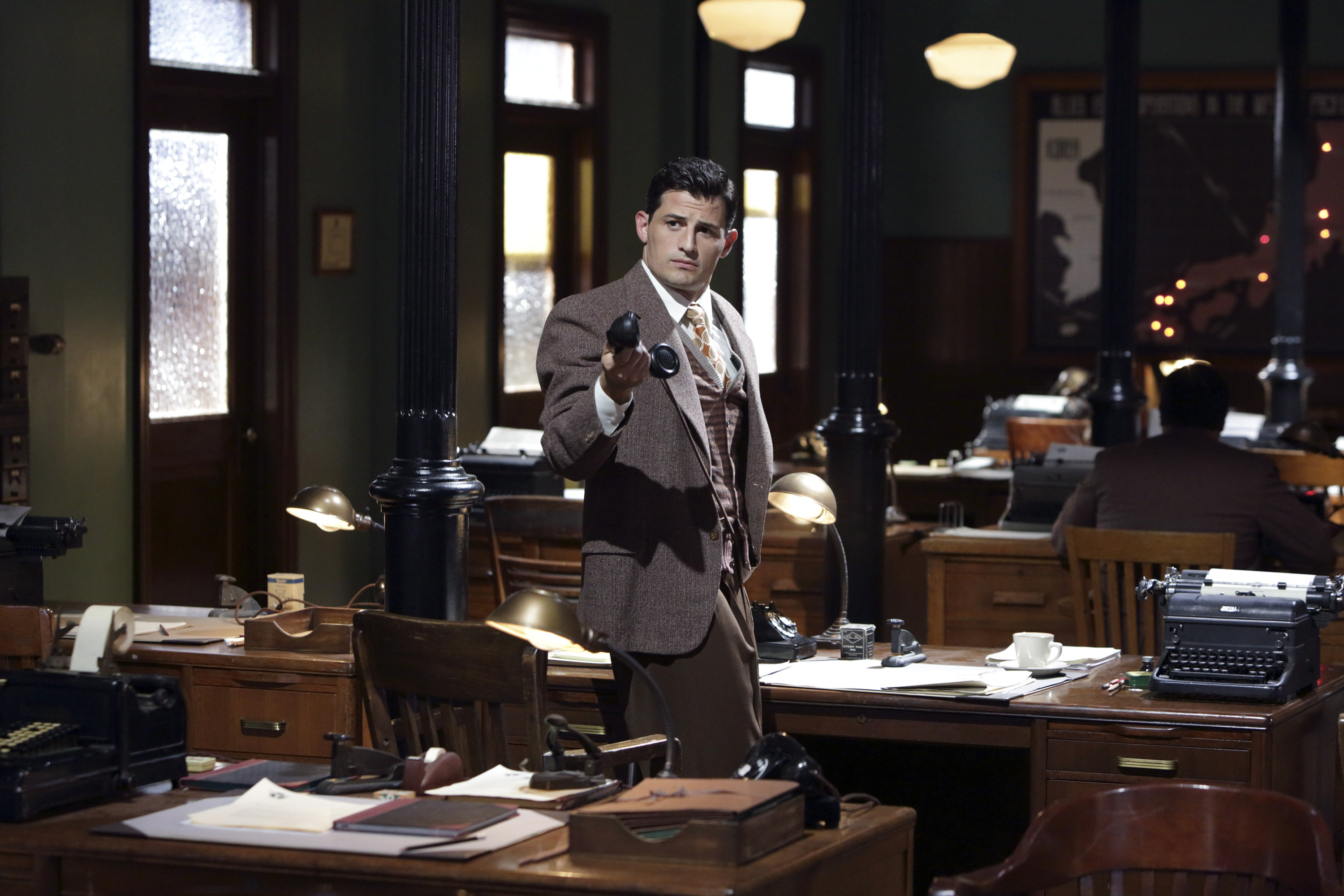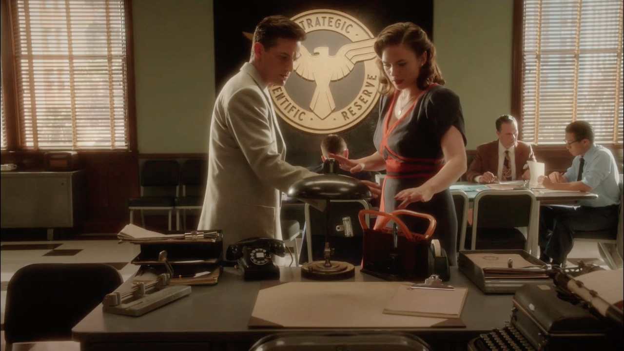 The agents saw that the newspapers already had articles accusing Wilkes of espionage, but they had not given them a statement, much fewer grounds for a headline article. While discussing this, Sousa and Carter found Jack Thompson sitting at Sousa's desk in the Auerbach Theatrical Agency, wondering why they were so late for work. Thompson said that he came there from New York City because he had business in Los Angeles; while he was there, he decided to revise the preliminary report Carter had made on the explosion at Isodyne Energy Headquarters, accusing Wilkes of espionage and with his death, the case was now concluded. Carter refused to sign such a report, so Thompson said that, since she was on loan from the New York Bell Company, he was still her superior officer and he could sign it himself. Sousa watched as the two disputed.