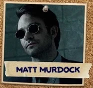 Daredevil: Red Thread is a website created for the promotion of the first season of Daredevil. It is based on the board with the investigation that Ben Urich conducted to connect the different players in Hell's Kitchen. On the board various names of key figures from the TV series were placed in a orderly formation. For each character the name was either written on a photo or a playcard, when a card or photo was related to one of the characters on the board, they would be connected with a piece of tape between them. Having the most connections, Wilson Fisk was placed at the top-middle of the board and was represented by a diamond king playing card. The masked vigilante, better known as Daredevil, was portrayed as a jack heart playing card, with the head on the topside colored black in the form of a mask.