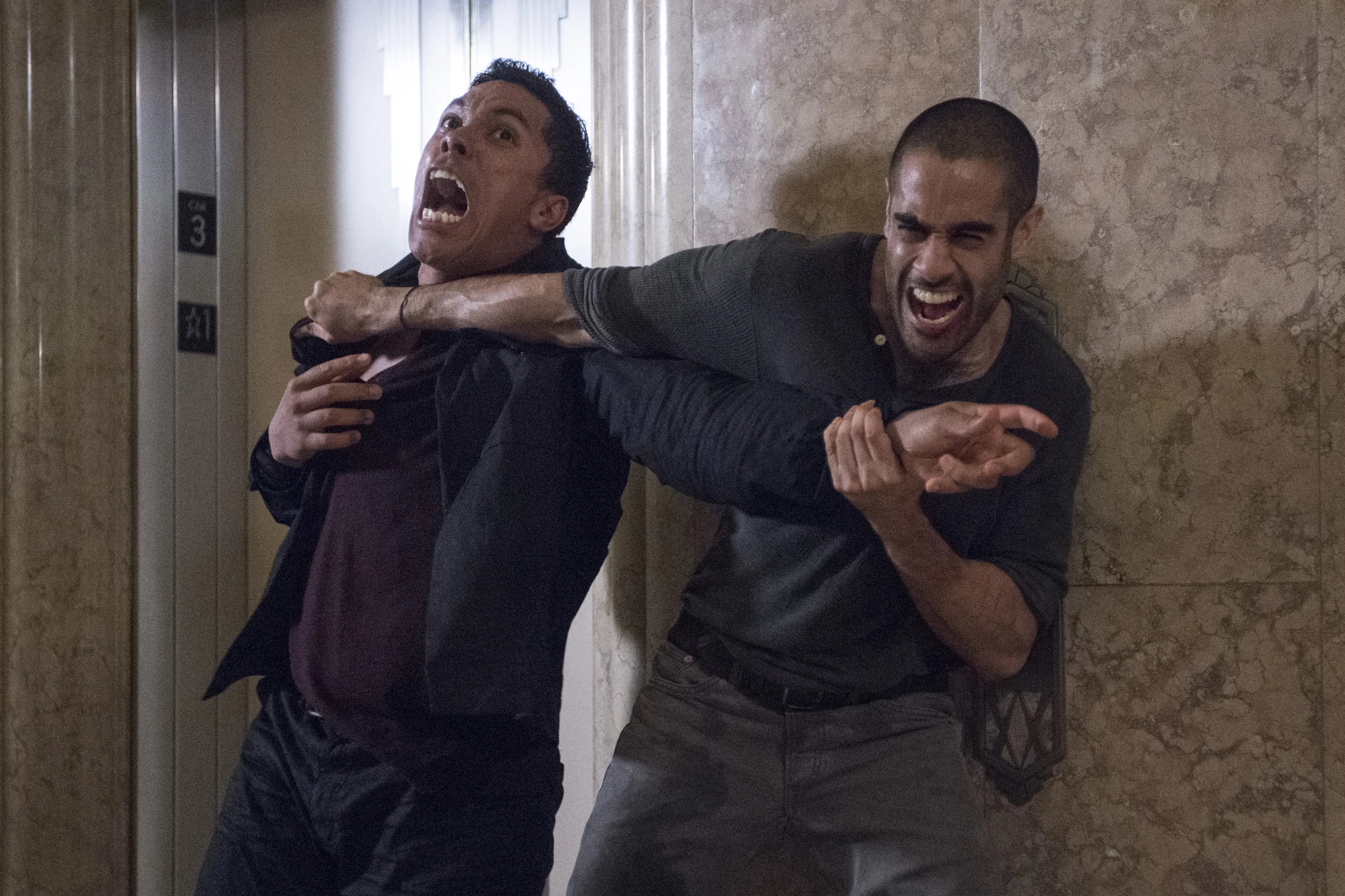 Rand then revealed that he was armed with a tranquilizer like he had used with Mary Walker to subdue Davos previously, as Davos did everything in his power to then keep Rand from injecting him with it. However, when Davos managed to knock it out of Rand's hand, he still managed to catch it and plunged the needle into Davos' chest. However, this only enraged Davos even more as he began furiously throwing punches at Rand, only for the effects of the tranquilizer to cause him to lose focus and power in his punches, as Rand was able to easily keep Davos at bay while he had tried to keep himself awake and focused in order to then still continue fighting against Rand.