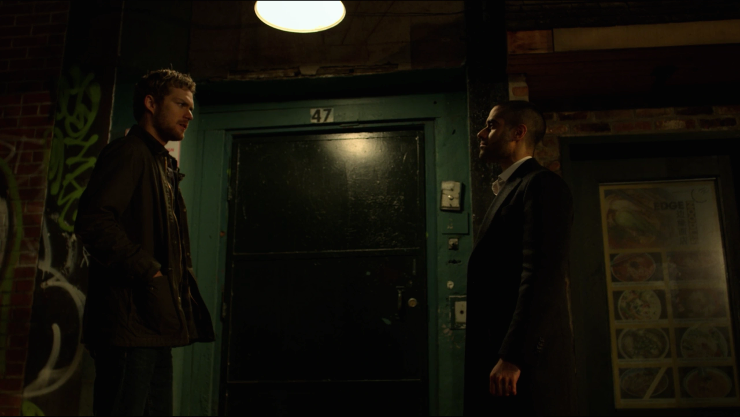 Following the tense meeting with the Yangsi Gonshi, Davos went to meet with Joy Meachum at her new Apartment to update her on the situation. Meachum offered Davos a drink, but he noted he did not drink and regulated his own diet to ensure his body was at peak physical perfection. Davos then informed Meachum that Hai-Qing Yang changed the price, as Davos complained that his connection with Yang as well as New York City itself was a plague upon him.