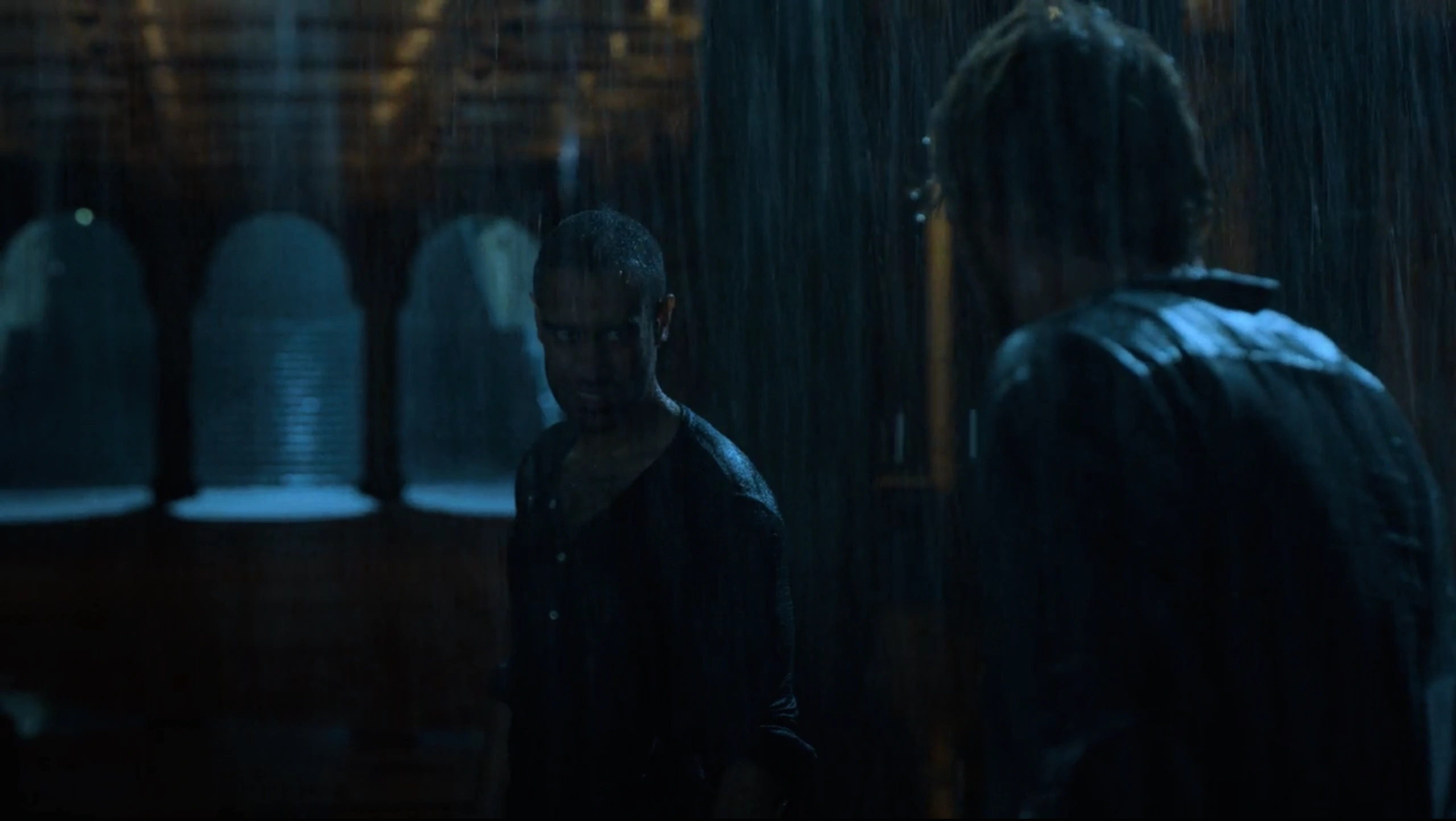 With the duel continuing into the early hours of the morning, Davos had now gained the clear advantage as he repeatedly hit Rand in the face, with both of them now covered in their own and each other's blood. As Rand could barely stand, Davos insisted that the fight was over and continued to demand that Rand finally yield the fight so that he did not have to kill his brother. Rand, however, refused to back down, blocking as many of Davos' strikes as he could but seemingly unable to land any counter strikes. As Davos insisted that he could not run forever, Rand claimed he was not running but leading.