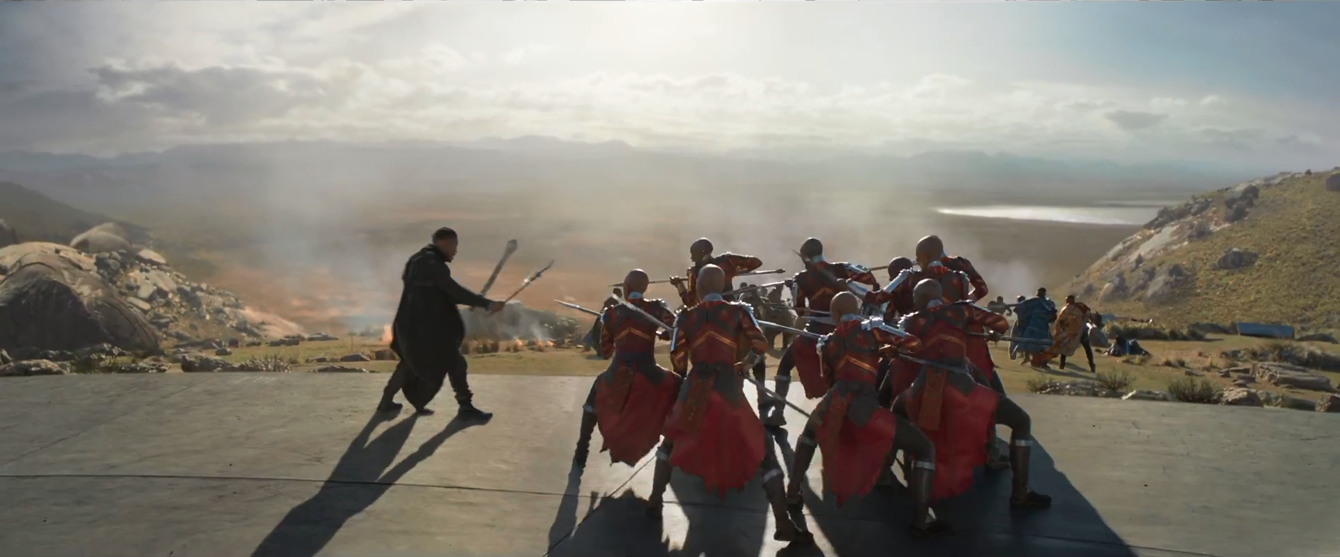 The Dora Milaje surround the opposing duel