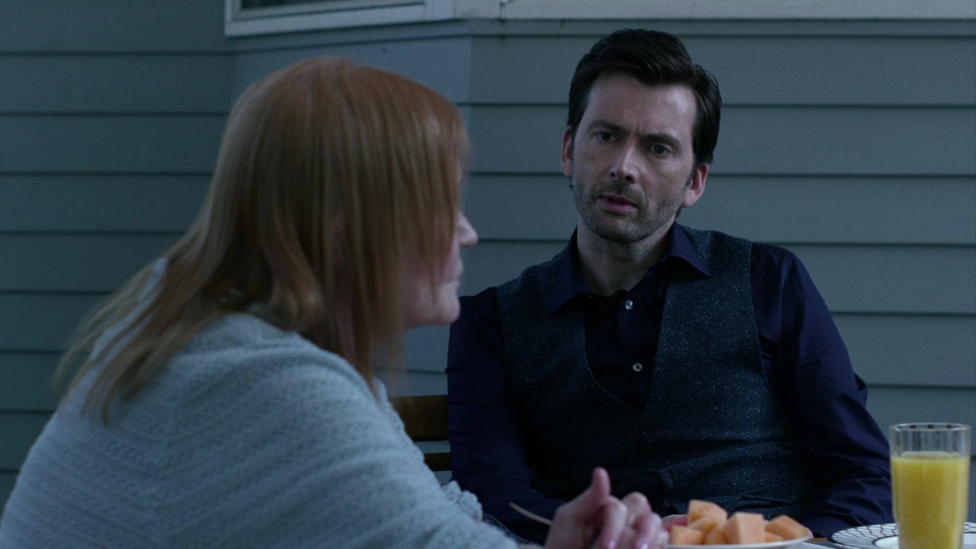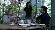 One morning, De Luca saw Jessica Jones and a man eating breakfast on the back patio of the Jones Residence; she went to greet Jones and the man, assuming he was her husband. Jones corrected De Luca about her marriage assumption, while the man invited her to join them for breakfast; as she ate bacon, De Luca talked of Jones' past.