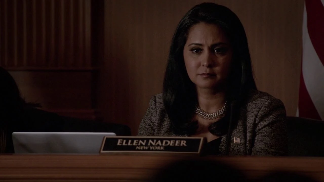 With the law and Chairman Williams both on her side, Nadeer had a private meeting with Director Mace and General Talbot in which she demanded a full investigation into the new S.H.I.E.L.D. and its most recent activities. As the situation was so serious, Nadeer then also threatened to bring in charges against S.H.I.E.L.D. for breaking into her office and going against the Sokovia Accords, intending to drag out the meetings for as long as possible to cripple S.H.I.E.L.D.'s attempts to continue their work. With the meeting over, Nadeer left satisfied with the result while Mace was disheartened.