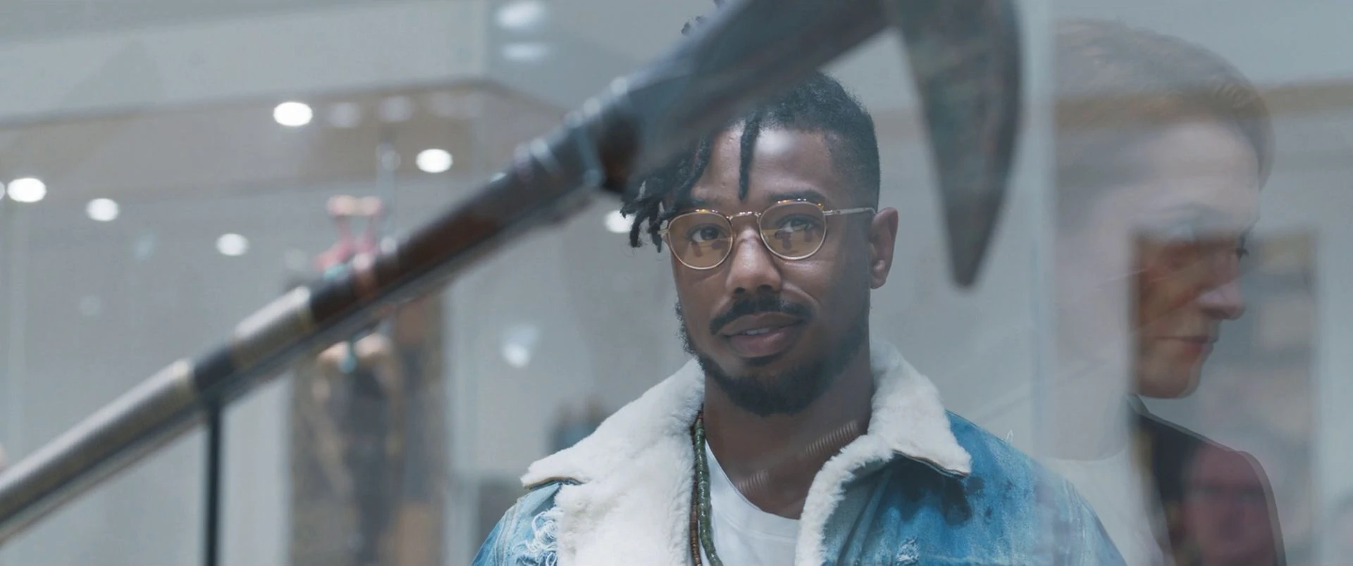 While looking at the African masks that were on display, Killmonger was joined by Thomas, claiming to have an interest in their history. As Killmonger pointed to each mask, Thomas was able to explain where each one came from. Finally, Killmonger pointed to the vibranium axe, which Thomas claimed was from Benin's Fula Tribe, only for Killmonger to correct her and explain that it was actually from Wakanda.
