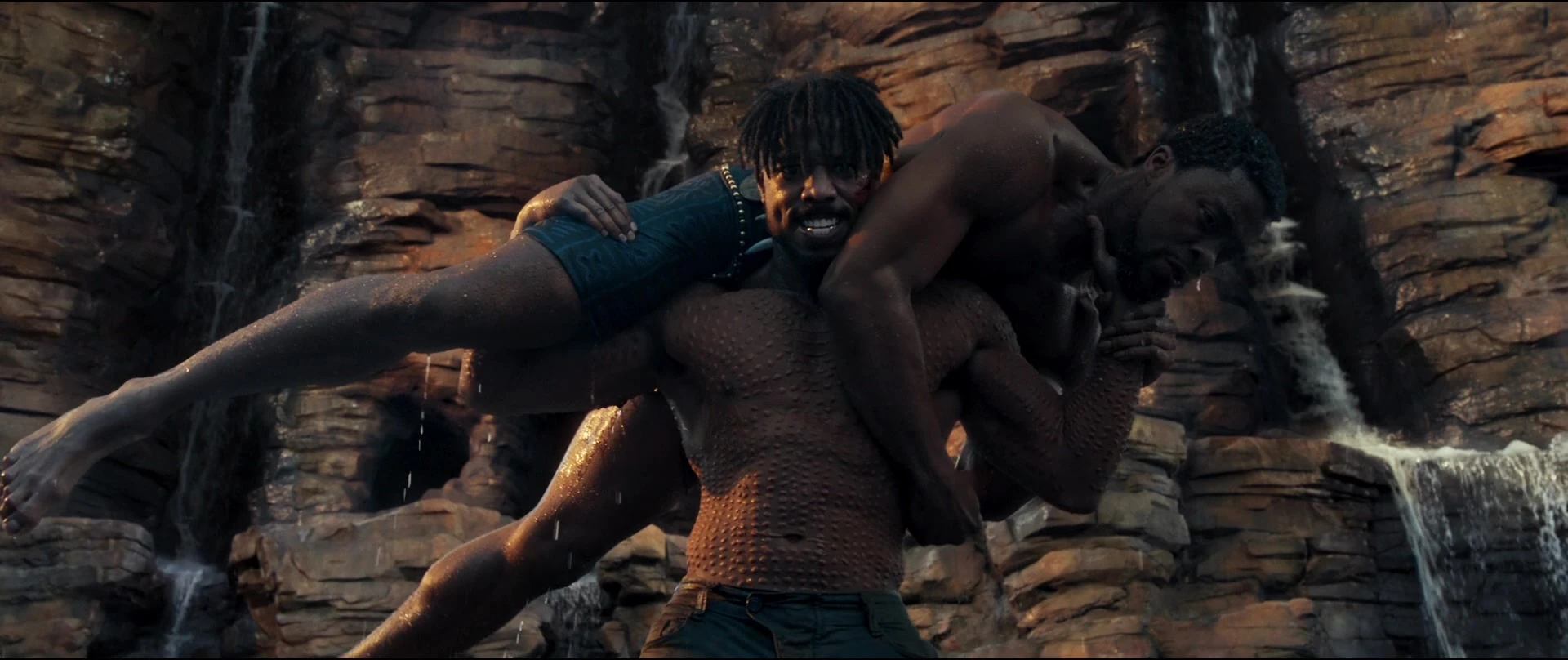Killmonger throwing T'Challa off the waterfall