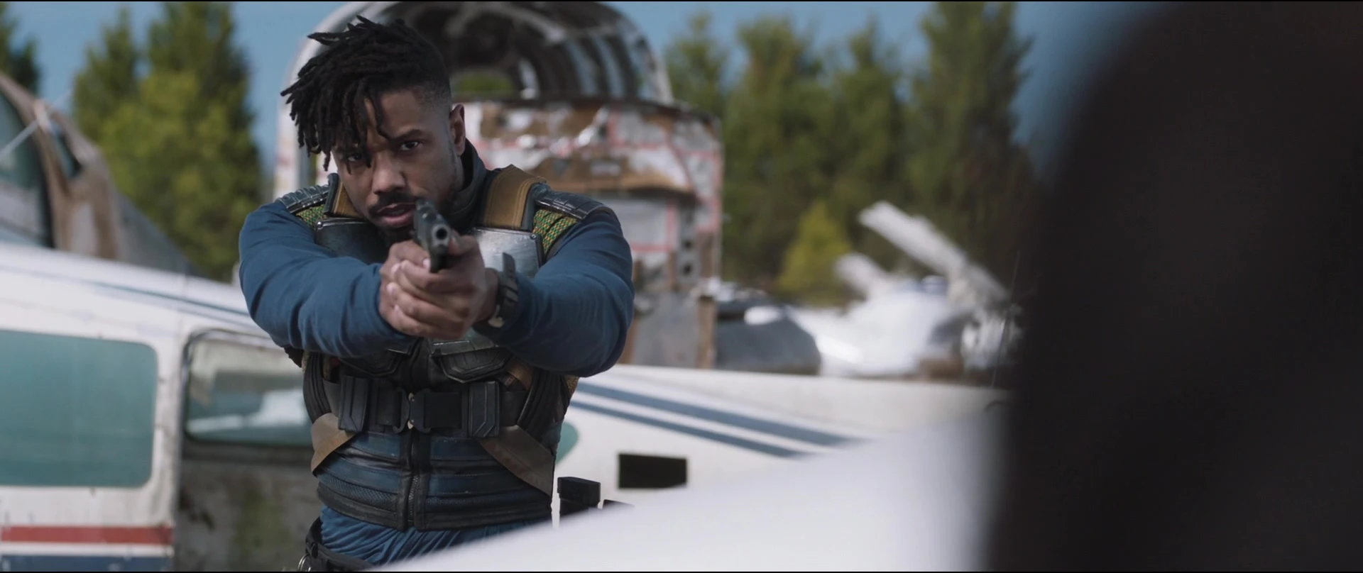 Killmonger arming himself with a handgun