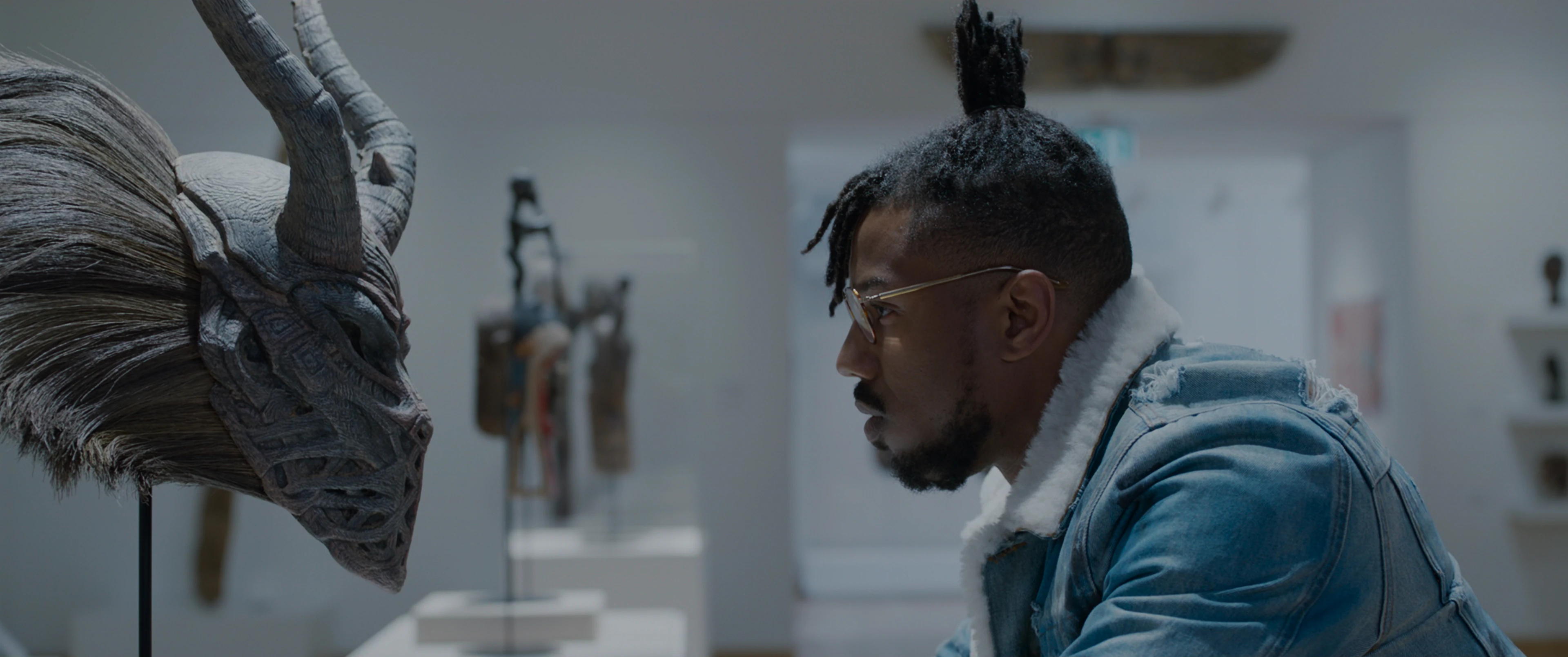 Killmonger looking at all the African artifacts
