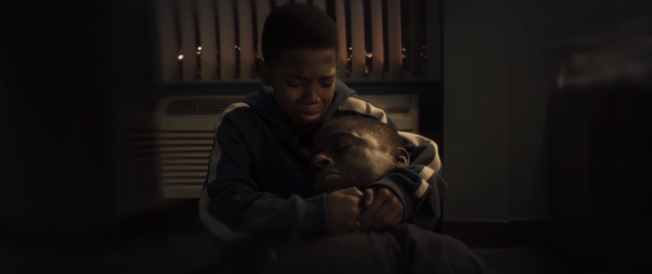 Stevens cries while holding his father's corpse