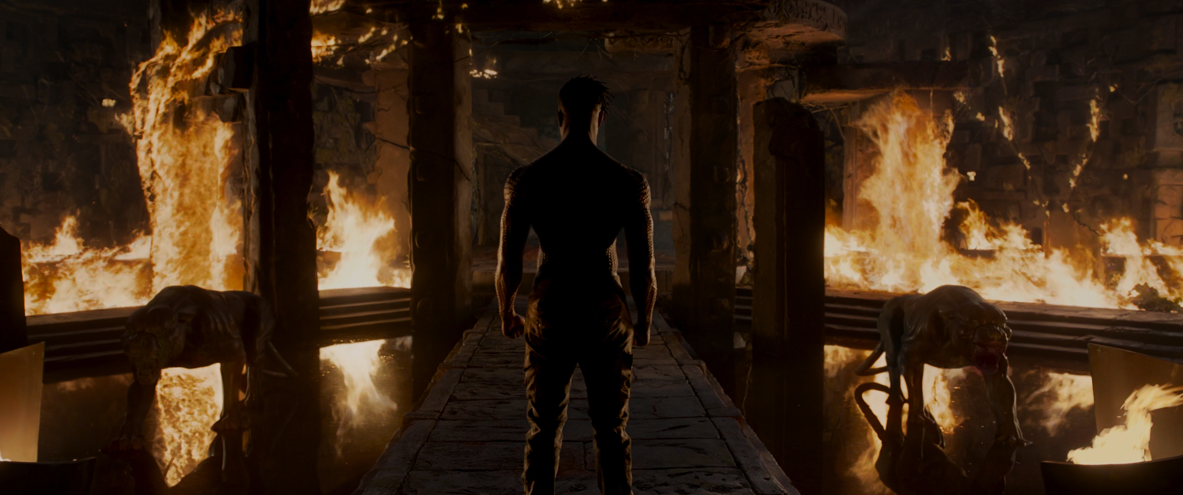 Once T'Challa stood back up, he gave Killmonger one final chance to lay down all his weapons so they could handle the situation another way. Instead, Killmonger then removed his Bulletproof Vest and shirt, revealing his tribal Crocodile Scarring, and told T'Challa how he had lived his entire life for this one moment, noting how he had killed all across the world, including Afghanistan, Iraq and Africa, just so that he could come and have his chance at killing T'Challa.