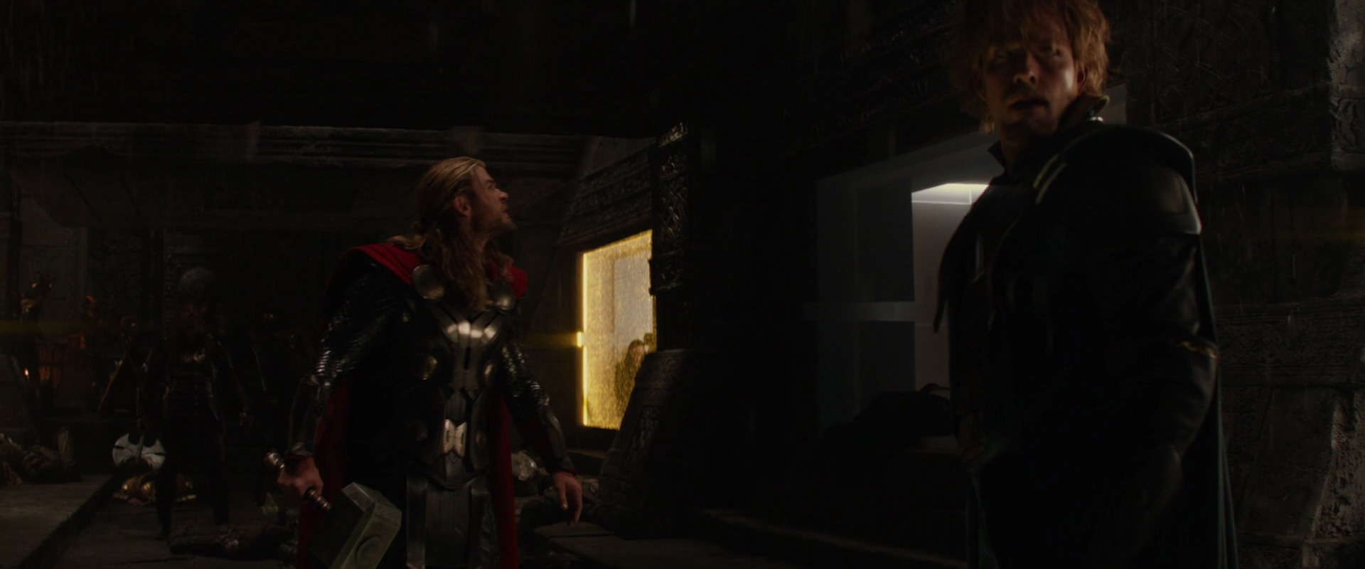 They used the Bifrost Bridge to return home and Volstagg carried the wounded Fandral to the healing room. As punishment for causing this second war between Asgard's forces and Jotunheim, King Odin chose to banish Thor onto Earth without his powers or Mjølnir. While Volstagg and Fandral had their injuries from the battle treated, they discussed how King Odin could have discovered their plans.