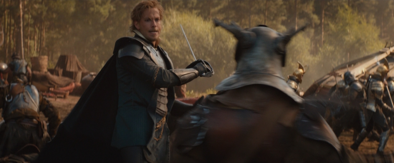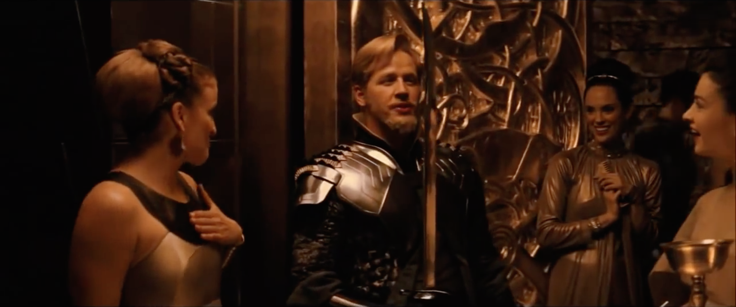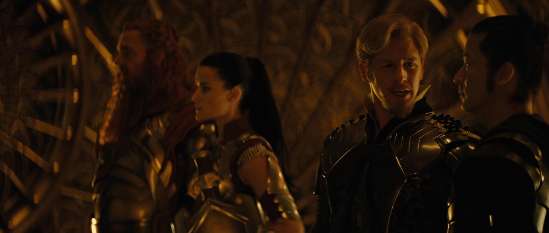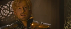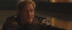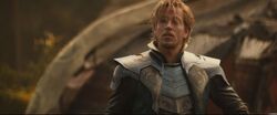 Fandral teased Loki by noting that clearly all of his time locked inside of the Asgardian Dungeons had not made him any more graceful before handing the controls to their Skiff over to him, so Loki could guide it towards Svartalfheim. While Thor attended to Foster, who had collapsed due to the effects of the Aether, Fandral realized that one of the Einherjar's ships had stopped them are were now giving chase, so Fandral volunteered to deal with them all quickly.