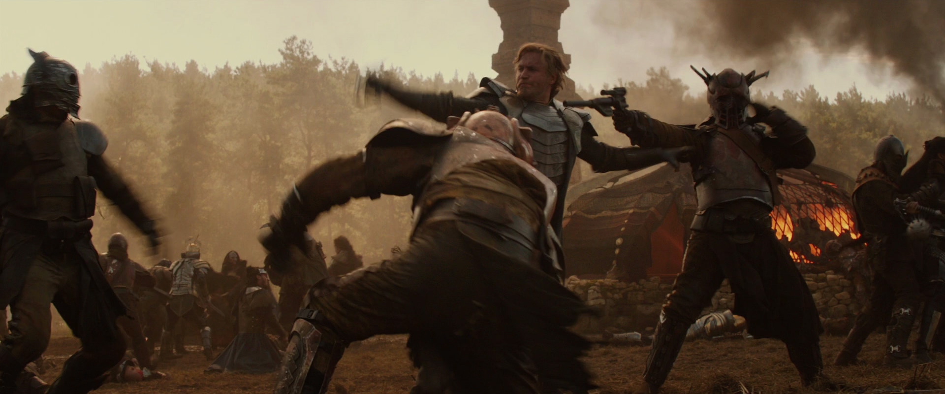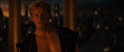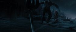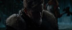 As more Frost Giants came out of the shadows and surrounded the group, Laufey insulted Thor by calling him nothing more than a boy before he dismissed the Asgardians from his realm, with Loki warning Thor to see that they were vastly outnumbered by Laufey's forces. As they turned to leave, however, Thor was then baited by the mocking heckling of Hailstrum, which Fandral sighed at he knew what was coming next from the highly arrogant and war hungry Thor.