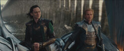 Loki refused as he claimed to be unable to contradict his father's final order as King. Loki argued that as they were now on the brink of war against Jotunheim, the people of Asgard now needed a sense of consistency during such difficult times. When Lady Sif attempted to confront Loki, Fandral grabbed her arm and advised them all to leave before they angered their new King. Despite this, Volstagg still tried to speak out but Loki then demanded that they all leave him.[1]