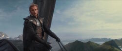 Upon arriving in Jotunheim, Fandral then looked around the barren landscape before following Thor as they all continued their mission. Fandral watched while Thor found and challenged Laufey, the Frost Giants' ruler, over the incident in Asgard in which his people had tried to steal the Casket of Ancient Winters. Laufey, revealed that Asgard was full of traitors while he showed he also had strength in numbers and mindful of an ancient truce between the two people.