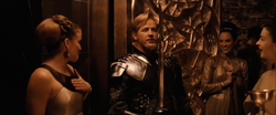 Fandral then joined the other Warriors Three alongside Sif as they all awaited Thor's arrival. Volstagg complained about still being hungry, which Fandral teased him about, with Volstagg then jokingly threatening to hit Fandral as a result of his mockery. Fandral had then begun teasing Hogun by insisting that he consider smiling at least once for the event while Lady Sif then challenged Fandral to at least try and keep his mouth shut during the entire ceremony.[2]