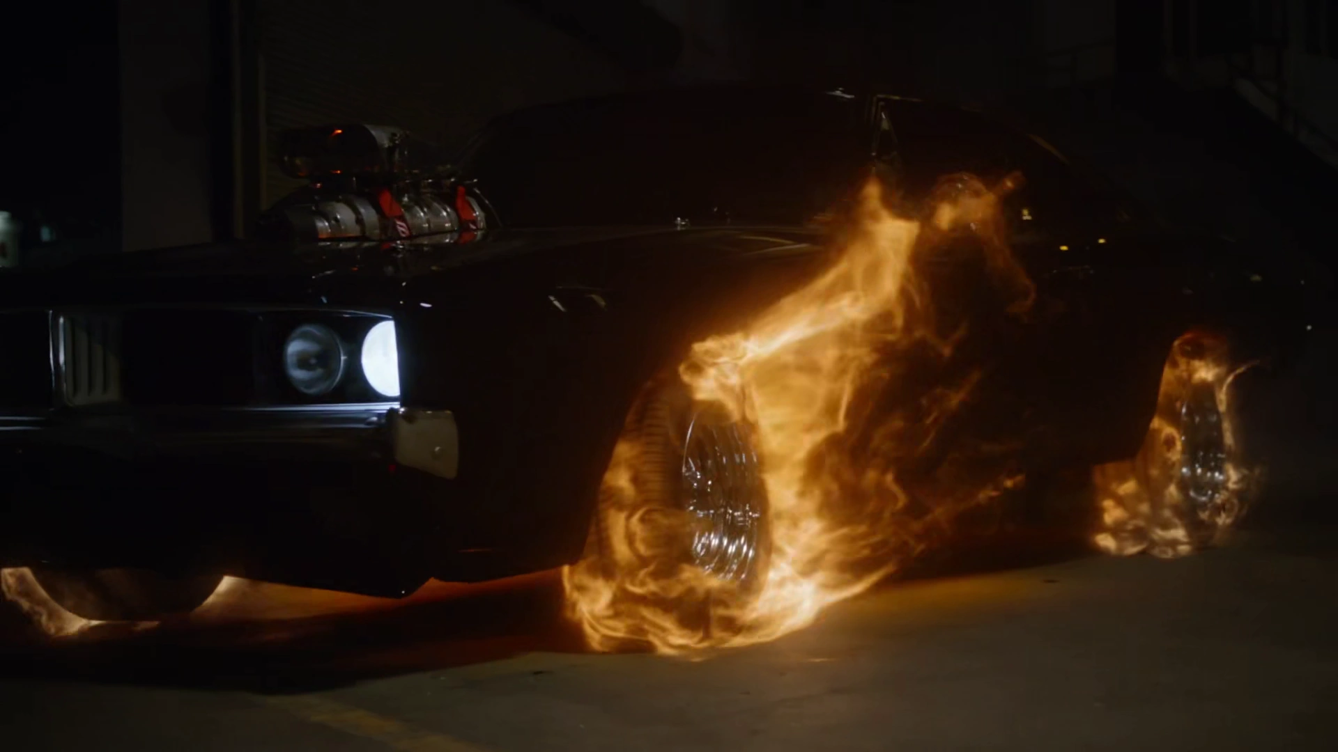 Having discovered that members of the Aryan Brotherhood had stolen a crate containing some mysterious cargo, Reyes chased them down in his Hell Charger. He found the men in a confrontation with Quake, and sped the car towards their truck before R. Moore fired a rocket launcher at it. The explosion briefly launched the car into the air and engulfed it in flames, but this only caused Reyes to transform into Ghost Rider and attack the gunmen, smashing the Hell Charger into them and killing D. Anderson upon impact with the side of the car.