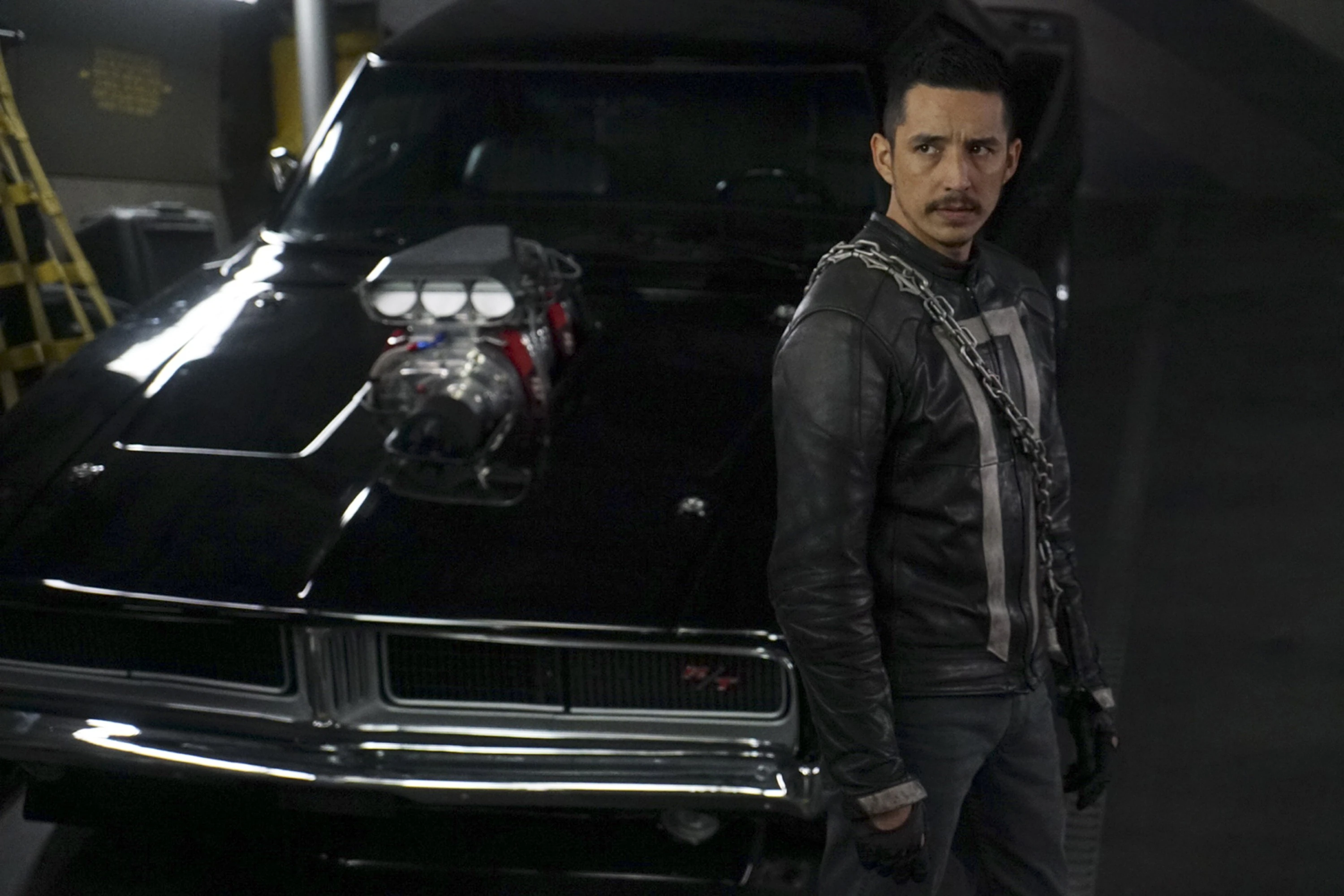 As Reyes pulled up to South Ridge Penitentiary to visit his uncle Eli Morrow, he spotted two S.H.I.E.L.D. agents who were just leaving; however, Reyes locked eyes with Alphonso Mackenzie who then recognized him from their earlier encounter when Reyes had killed the ghostly Frederick at Momentum Labs. Reyes took off driving the Hell Charger when he and Mackenzie recognized each other, with the two S.H.I.E.L.D. agents giving chase as Reyes drove through the streets of Los Angeles in a desperate attempt to escape.