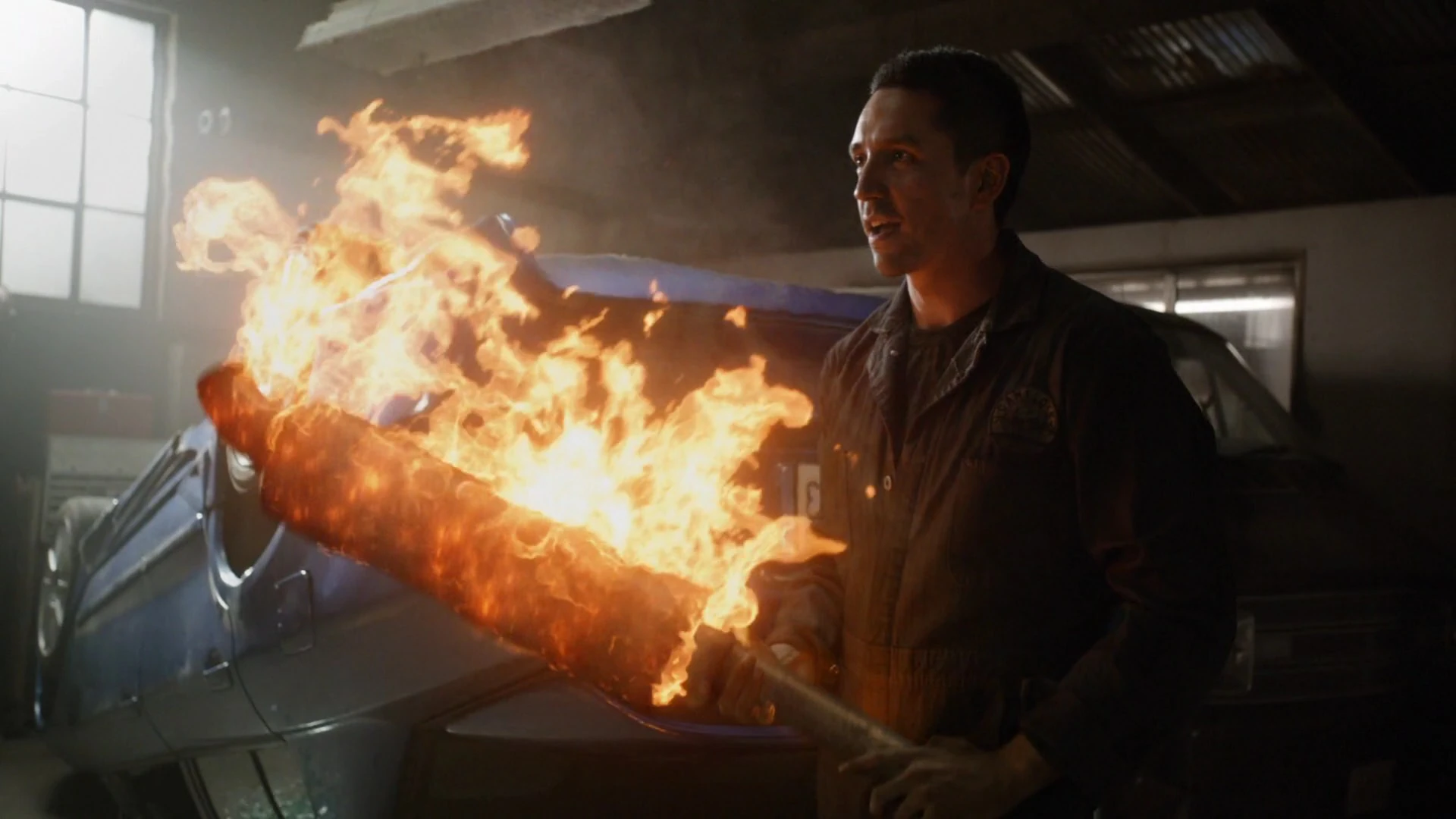 Continuing his work, Reyes helped a woman fill out her paperwork for the car he had just repaired for her and told her that she could pay inside, while he became distracted by Daisy Johnson's Van, which had pulled up outside and had not moved in several hours. Becoming suspicious, Reyes took a crowbar and walked over to the van to see who exactly was following him. Reyes opened the van door and charged inside, crowbar at the ready, only to discover it was empty, allowing him to relax once again and put his weapon away as he planned on continuing his day by working.