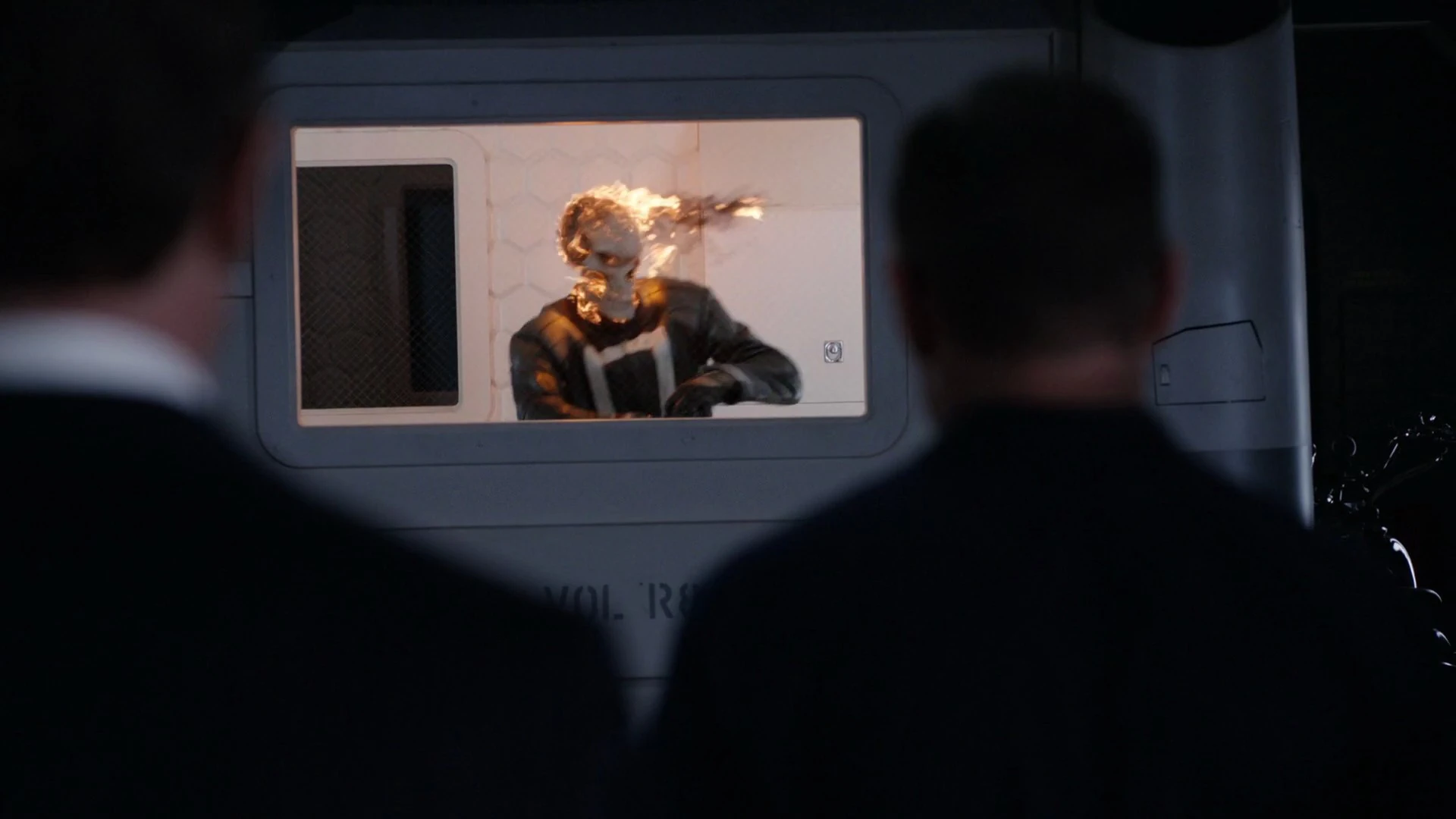 Reyes, however, refused to be locked in the Containment Module any longer and began pounding on the doors to try and break free while Daisy Johnson insisted it was impossible to escape. However, Reyes became more enraged and eventually transformed himself into Ghost Rider and continued to pound on the door with all his might, much to Gabe Reyes' horror. Despite Fitz's insistence to Director Mace that he could not escape, Ghost Rider quickly proved them all wrong by smashing the doors apart and stepping outside in a now furious rage.