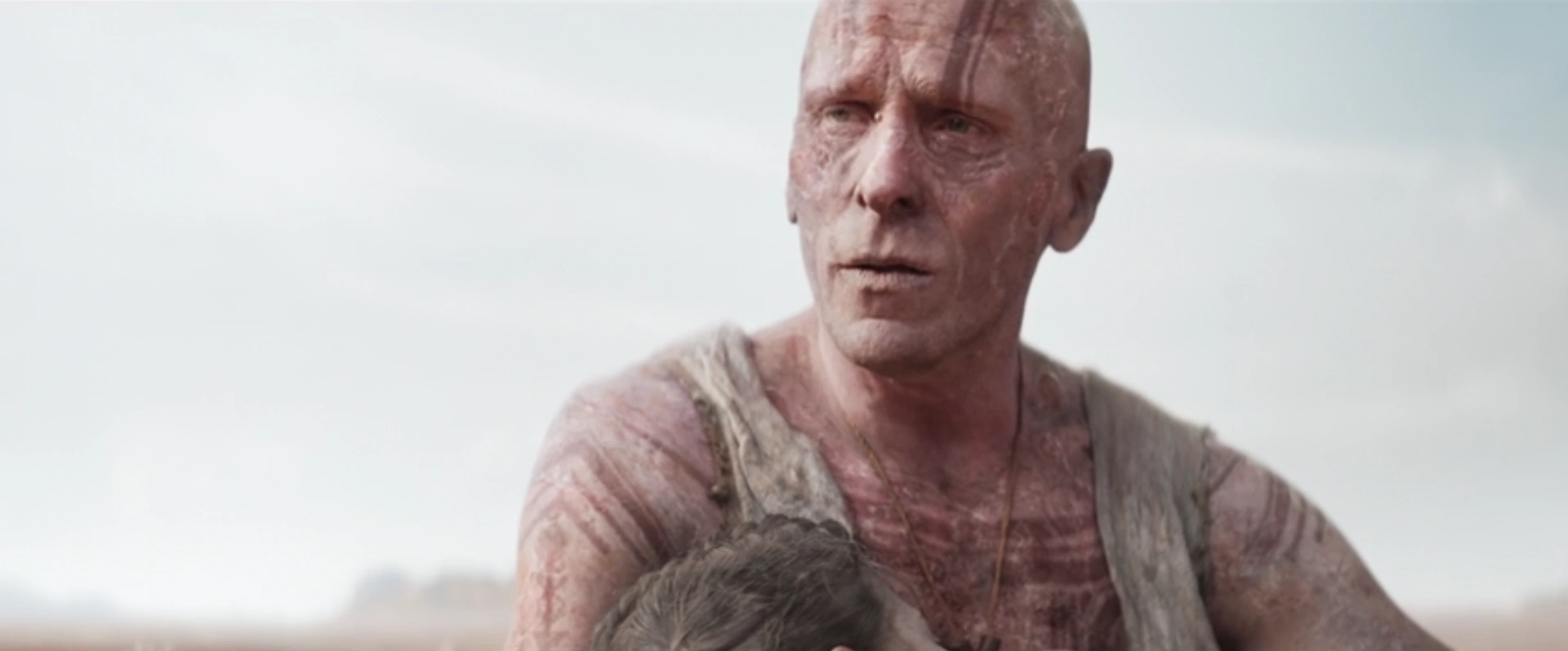 Gorr was given a daughter, and they both constantly prayed to their planet's god Rapu, with his daughter drawing pictures of him while Gorr prayed. He had his head tattooed with symbols of his devotion to Rapu.[3] However, despite Gorr's continuous prayers to Rapu, the people of Gorr's planet died from the heat and lack of food and water, leaving only Gorr and his increasingly weakening daughter left.[1]