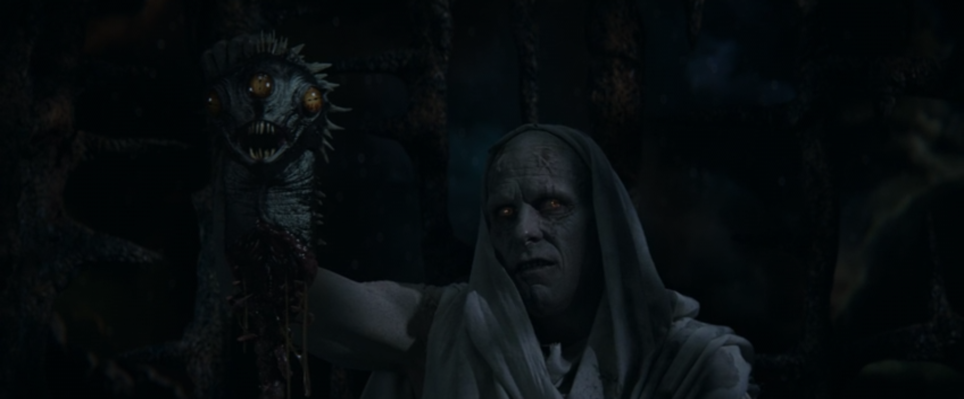 As Gorr flew the cage to the Shadow Realm, he overheard Axl Heimdallson recounting the story of how Thor went to Nidavellir to forge Stormbreaker, and then used it to decapitate Thanos. Wanting to intimidate the children, Gorr teleported into their cage suddenly, startling them. He told them what a nice story that was, before introducing the children to Octy, who he then proceeded to tear the head off of, frightening the children.