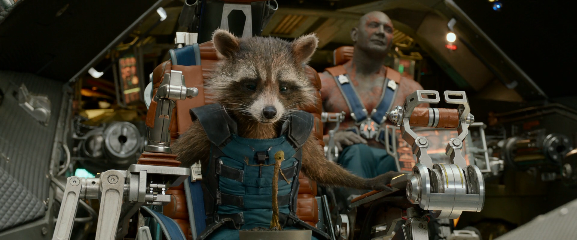The Guardians were quickly followed by the Sovereign fleet, who were furious with Rocket for stealing their Anulax Batteries. As Gamora had questioned the team on why the Sovereign had followed them, Drax the Destroyer accidentally revealed to them that Rocket had stolen their batteries. After the Sovereign began to fire at the team, they maneuvered towards an asteroid field. When Rocket and Star-Lord started arguing, they crashed into an asteroid, causing Groot to be pulled back and was catch and passed along the team.