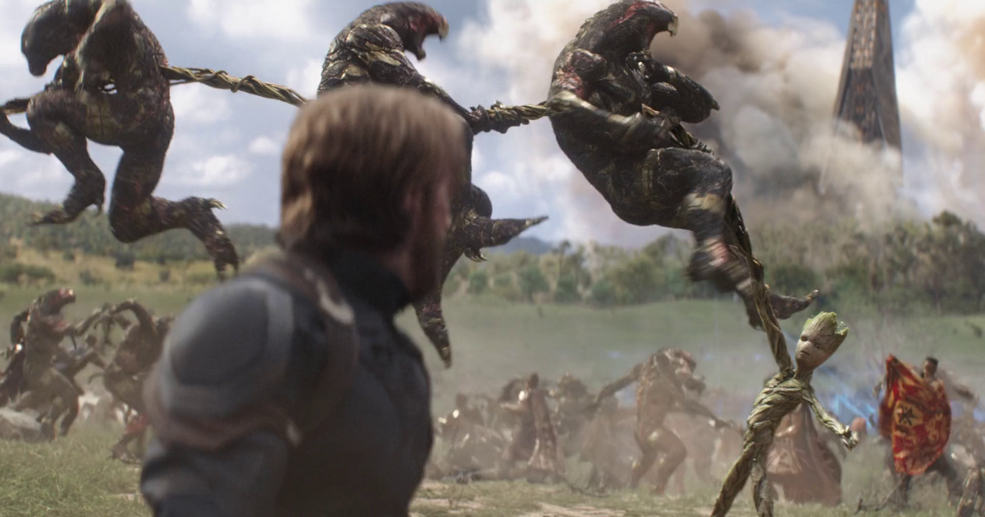 Thor had defeated some of the many incoming Outriders. During the heat of the fight, Groot impaled three Outriders with his arm and watched as Thor used Stormbreaker to impale many.