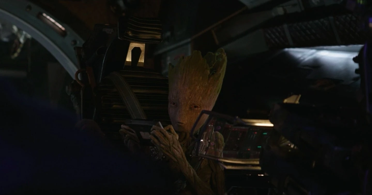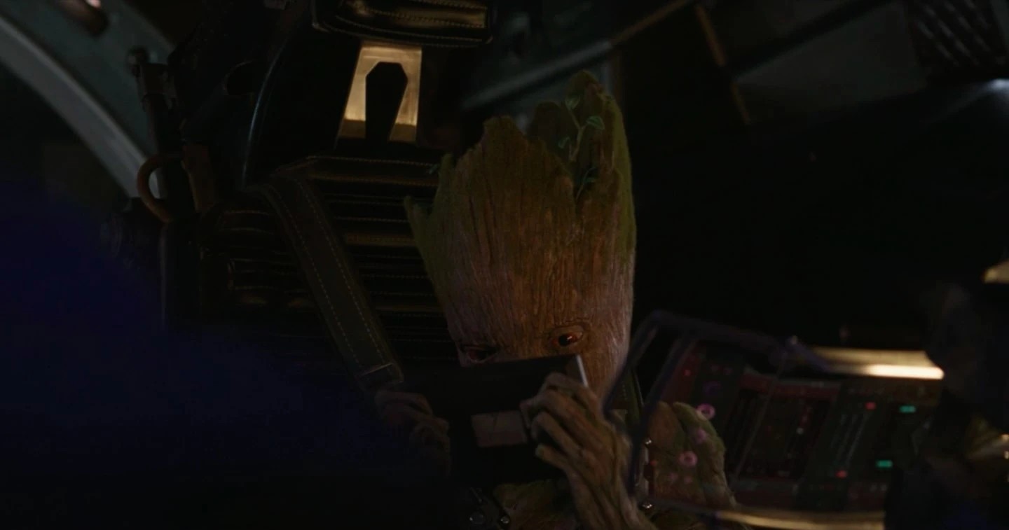 In 2018, Groot traveled with the Guardians of the Galaxy in space for the insurgency of a distress call sent out by the Asgardians. While the Guardians had piloted the Benatar while singing a pop song, Groot was distracted by his gaming handheld console, wearily playing Defender.