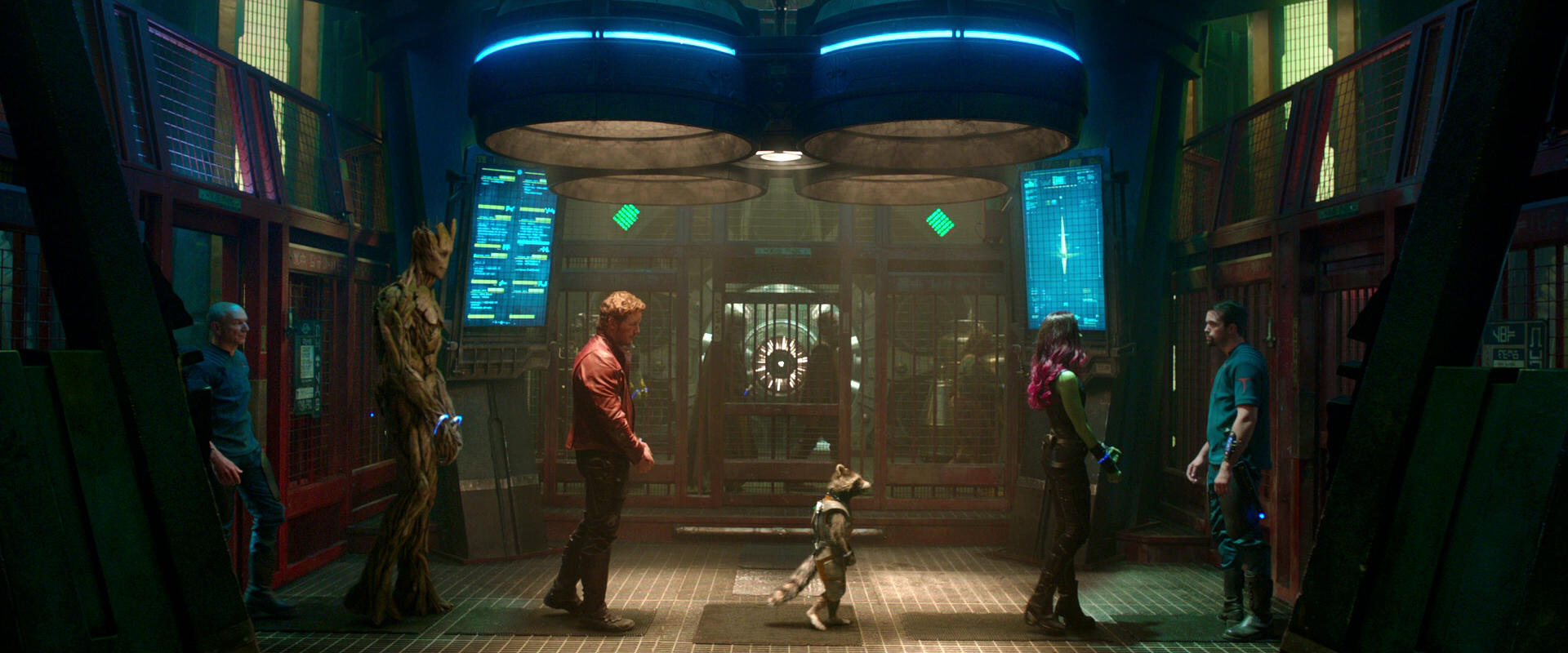 Once the group got into the watchtower and locked the door behind them, they were soon found by a guard, who had gathered his team as they attempted to shoot the watchtower while Rocket worked. As Rocket then initiated his plan by switching off the prison's artificial gravity and took control of the Kyln Hoverbots to propel them out of the prison's docking bay, Groot was happily proud of Rocket as the five escapees made their way to escape. Now safely out of the way of the Nova Corps, they gathered their supplies and left the Kyln before Quill retrieved the Orb back.[4]