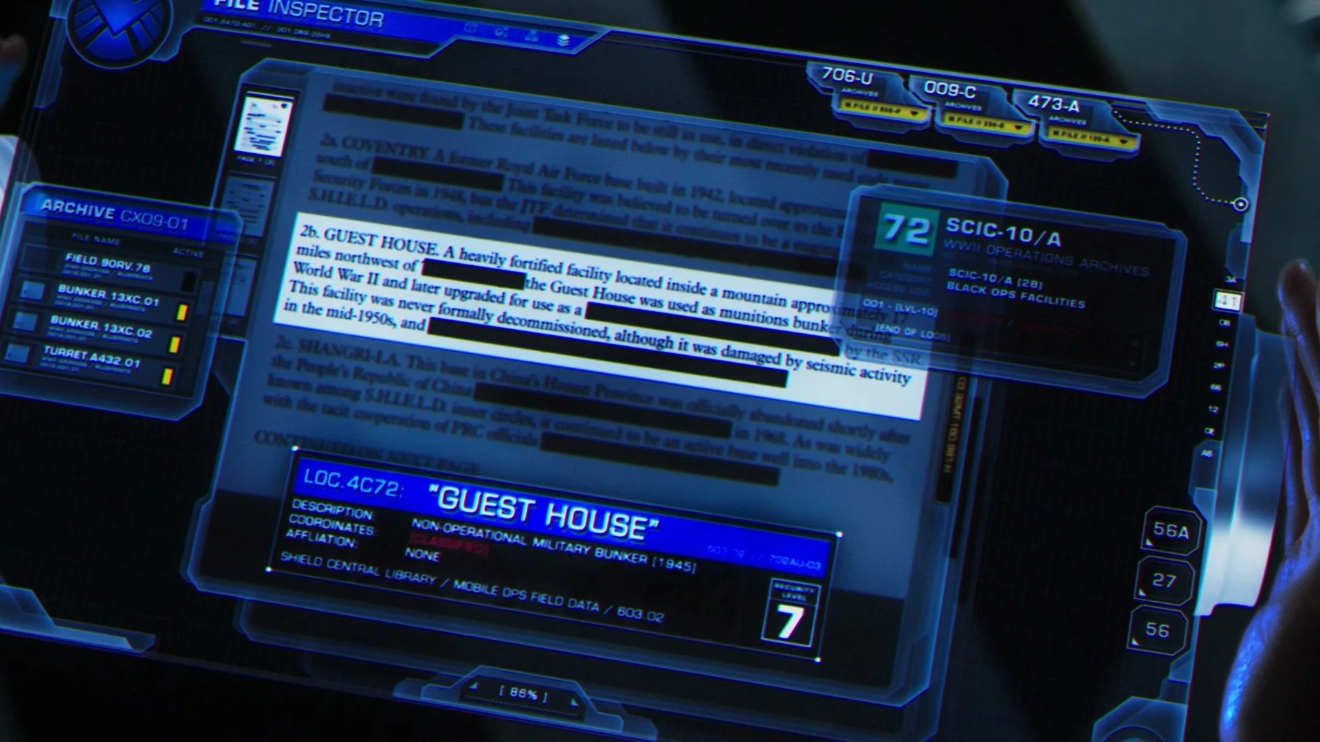The Guest House was a heavily fortified facility located inside a mountain approximately 17 miles northwest of an undisclosed North American location. It was used as a munitions bunker during World War II, and later upgraded by the Strategic Scientific Reserve for classified uses. This facility was never formally decommissioned, although it was damaged by seismic activity in the mid 1950s.[1]