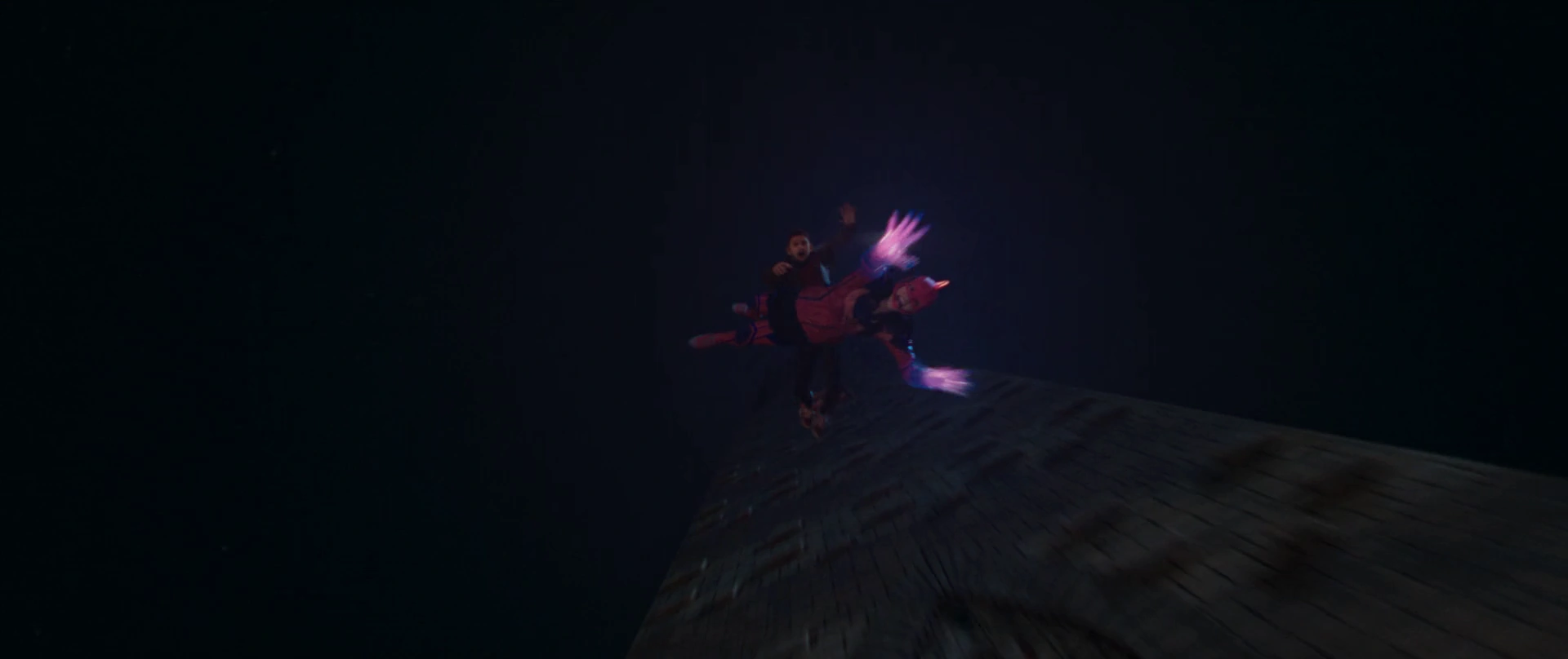 After the second to last hook fell out, Hameed screamed as Ms. Marvel began to rush to him. She used her powers to place a hard light platform below Hameed, but as the last hook gave out, the platform did not hold. Hameed fell towards Ms. Marvel, who tried to catch him, but instead his fall broke her platform and the two began falling together. Ms. Marvel managed to stop their fall with another hard light platform.