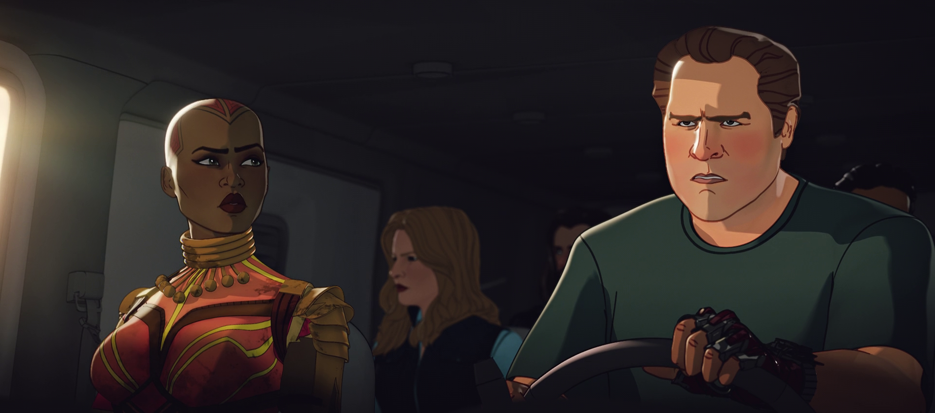 Hogan drove the group via one of Hope van Dyne's shrunken vehicles to the Grand Central Terminal. Along the way, Hogan explained to Okoye what his job was after she had misunderstood. Once they reached the Grand Central Terminal, a zombie peered inside the vehicle prompting a frightened Hogan to press the button to enlarge the van, causing the zombie to explode.