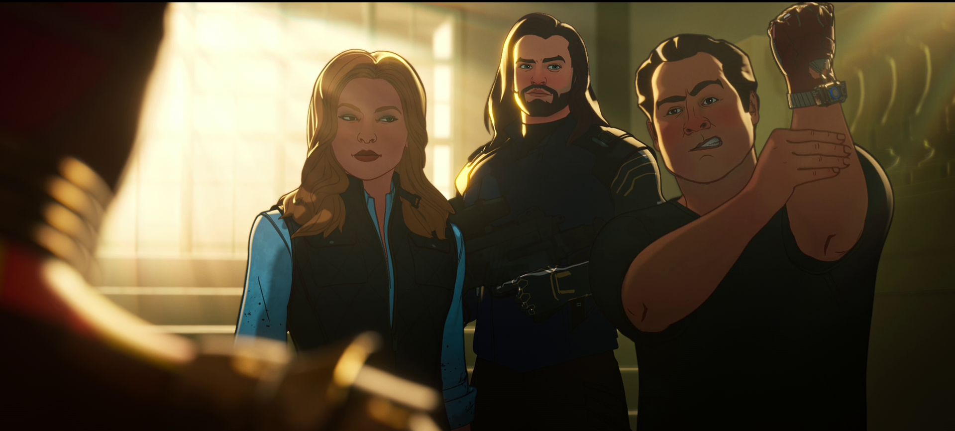 Inside the Terminal, Hogan put on Iron Man's repulsor. Despite Parker advising them not to split up, Hogan paired up with Sharon Carter and explored a section of the station, looking out for zombies. After a flock of birds startled Hogan, he used the repulsor to shoot at them, yelling "blam, blam," which seemingly irritated Carter.